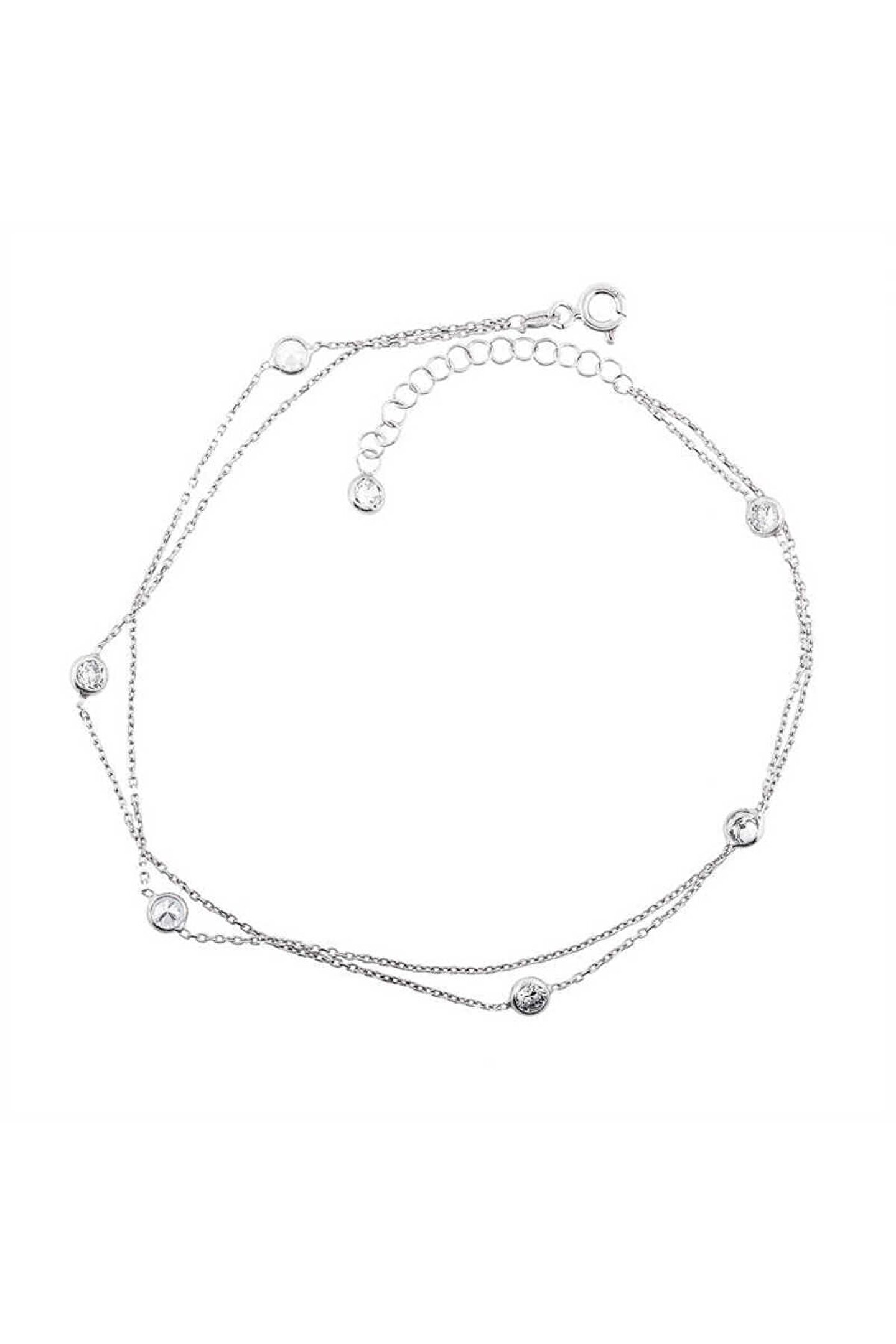 Samur Parti Parti Aksesuar & Kostüm Gümüş Çift Zincirli Beyaz Taşlı Halhal