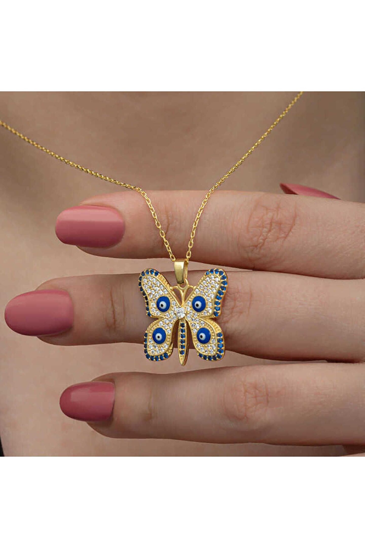 Samur Parti Parti Aksesuar & Kostüm Gümüş Gold Nazarlı Kelebek Kadın Kolye