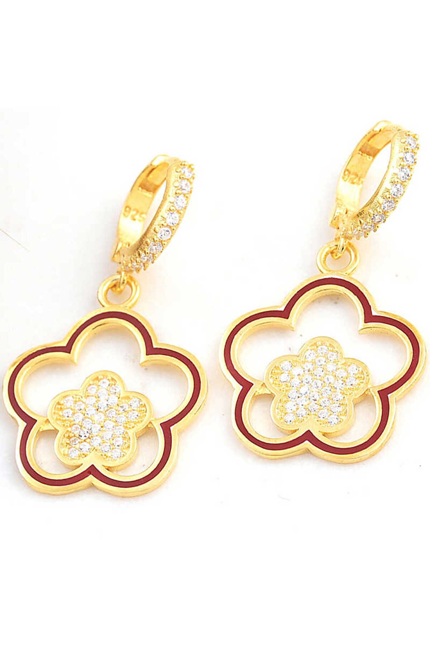 Samur Parti Parti Aksesuar & Kostüm Gümüş Gold Sallantılı Çiçek Desenli Kadın Küpe