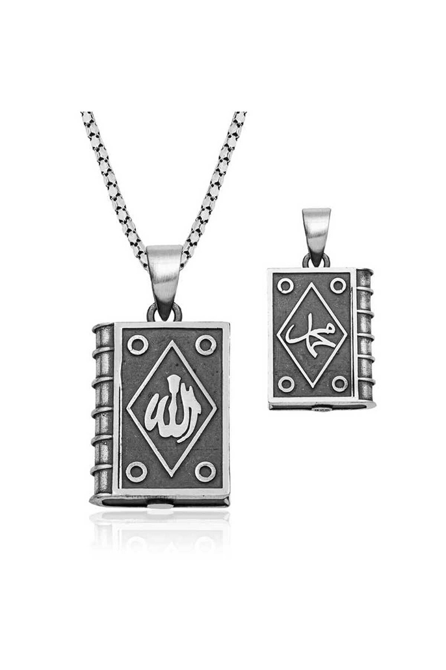 Samur Parti Parti Aksesuar & Kostüm Gümüş Kare Içi Açılabilen Allah Muskalık Kolye