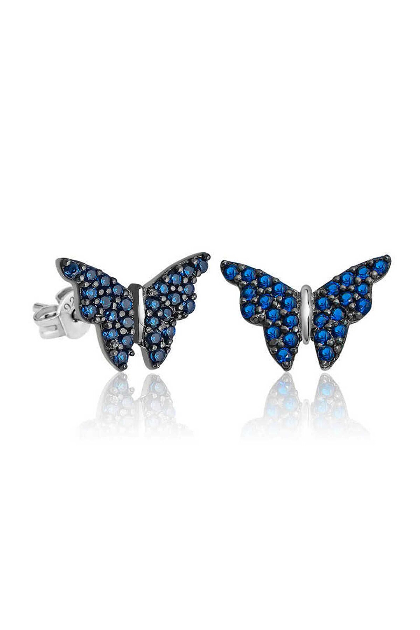 Samur Parti Parti Aksesuar & Kostüm Gümüş Lacivert Kelebek Küpe