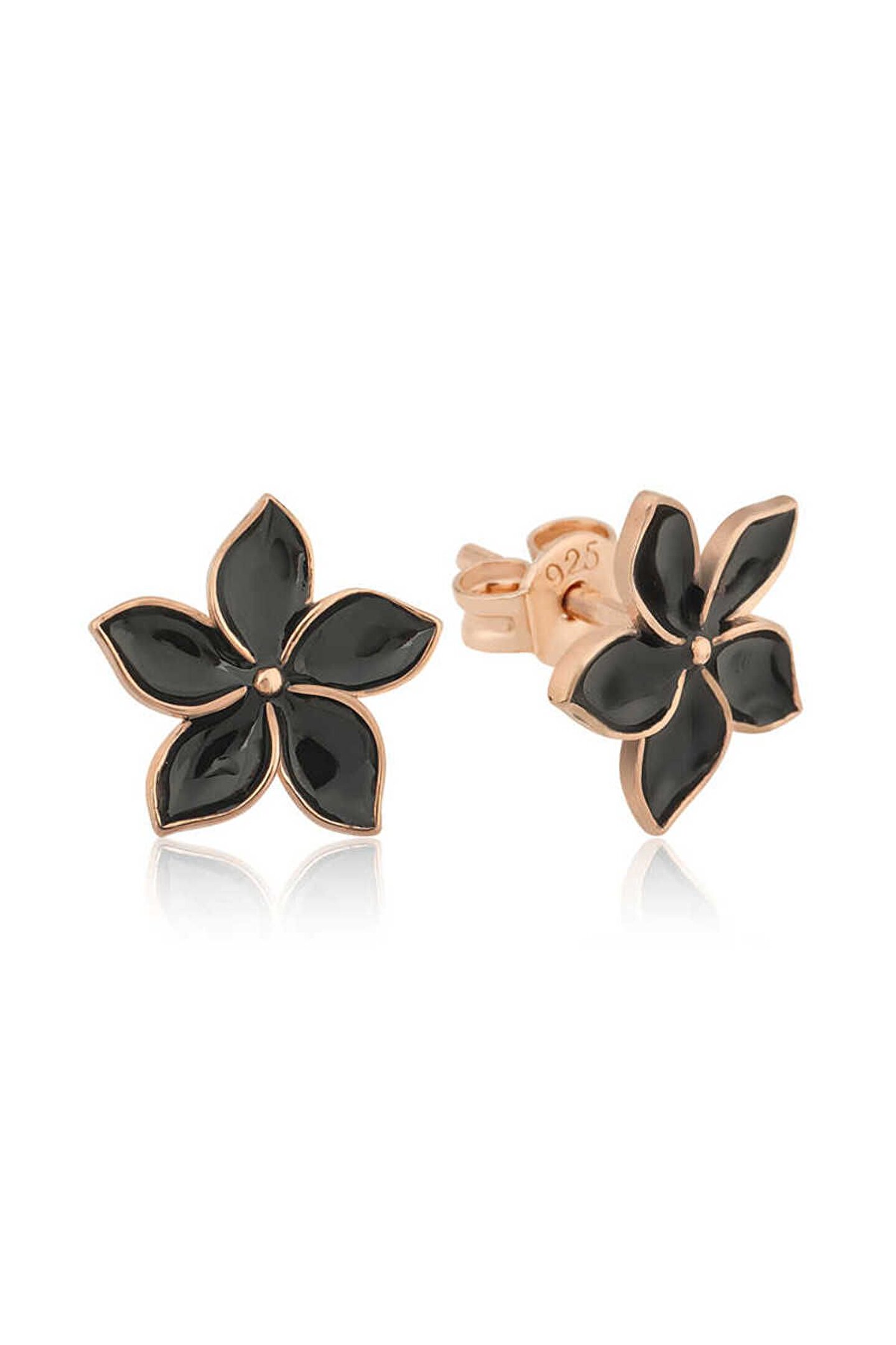 Samur Parti Parti Aksesuar & Kostüm Gümüş Siyah Yasemin Çiçeği Çivili Küpe