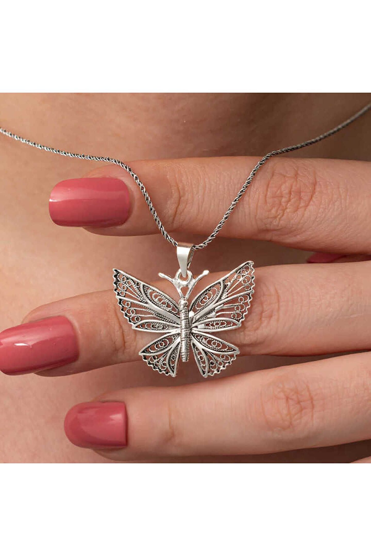 Samur Parti Parti Aksesuar & Kostüm Gümüş Telkari Kelebek Kadın Kolye