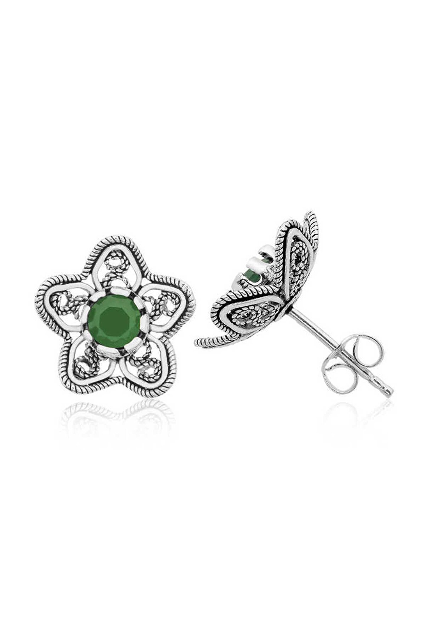Samur Parti Parti Aksesuar & Kostüm Gümüş Telkari Yeşil Nilüfer Çiçeği Çivili Küpe