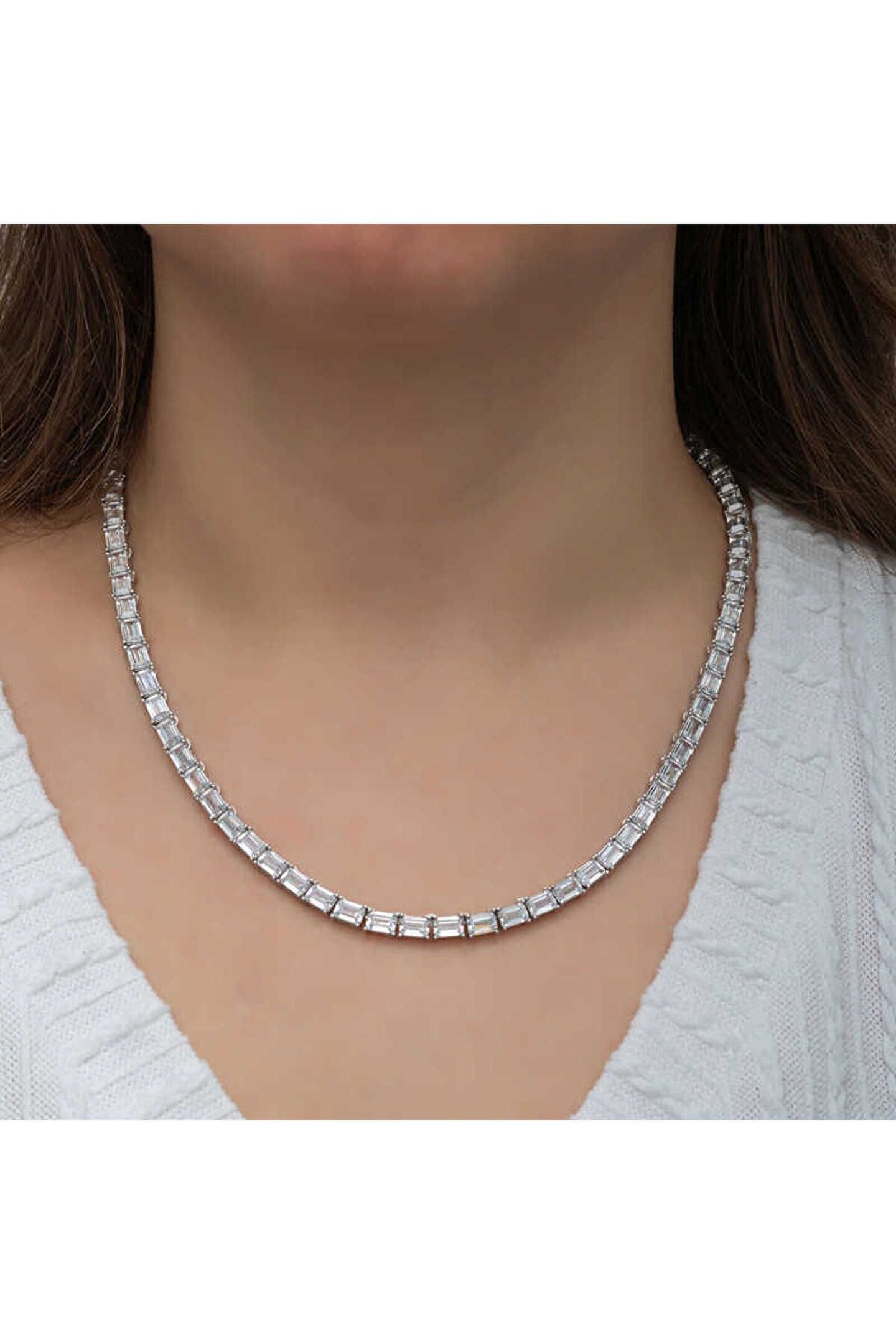 Samur Parti Parti Aksesuar & Kostüm Himarry Gümüş Beyaz Taşlı Su Yolu Kadın Kolye