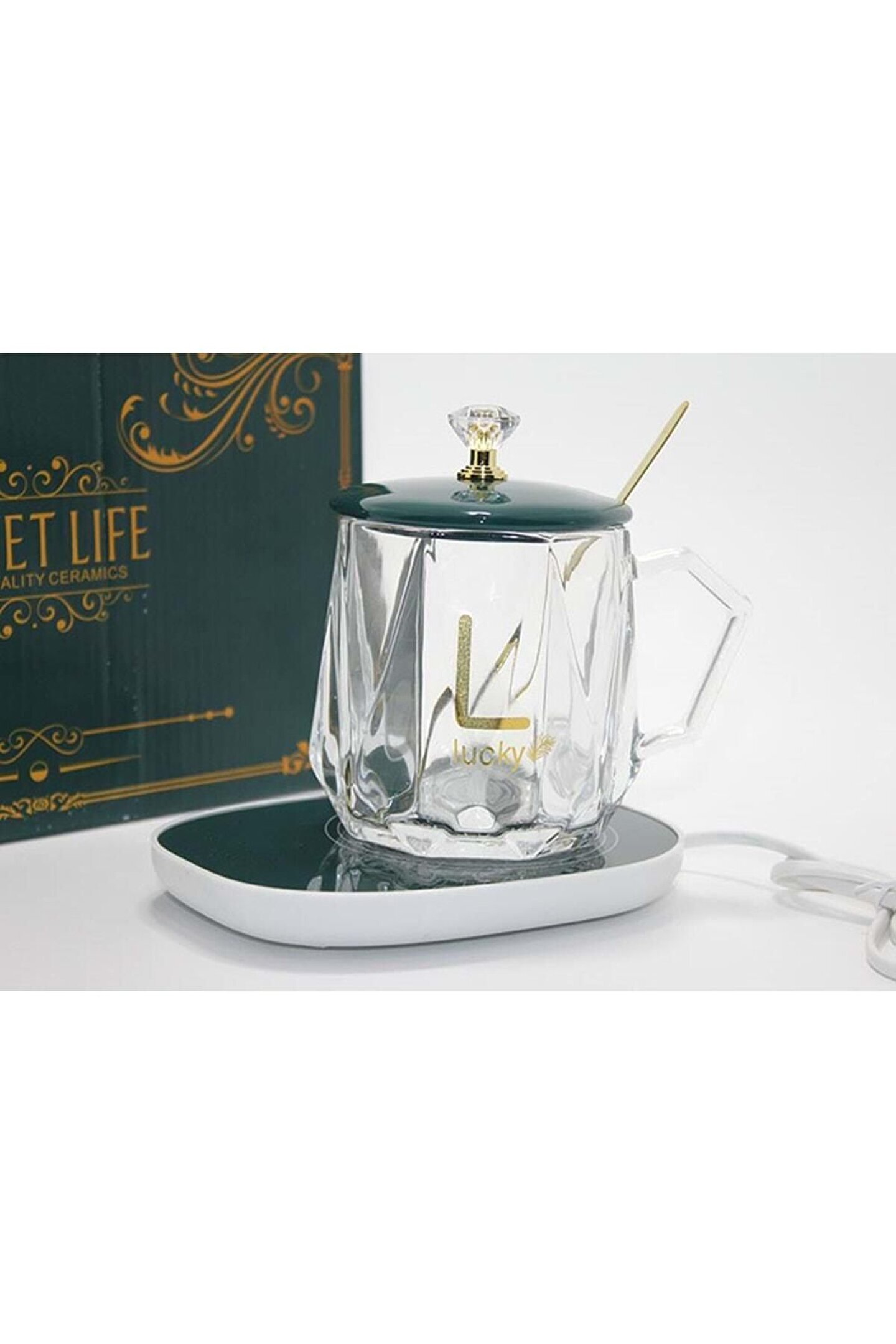 Samur Parti Parti Aksesuar & Kostüm Porselen Kapaklı Isıtıcılı Cam Kupa Bardak Dekoratif Hediyelik