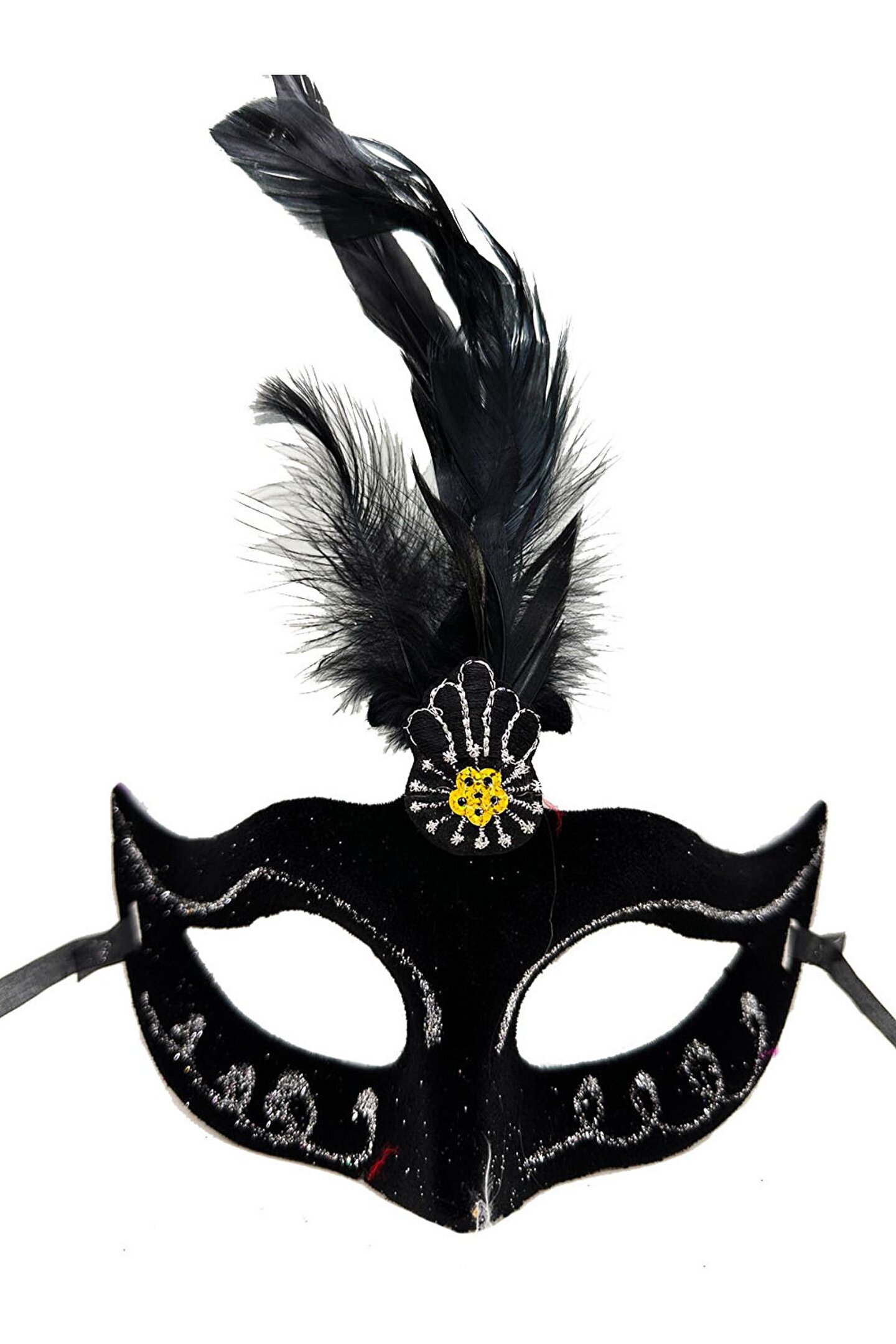 Samur Parti Parti Aksesuar & Kostüm Siyah Renk Tüylü Siyah Süet Kaplama Parti Balo Maskesi 20x16 Cm
