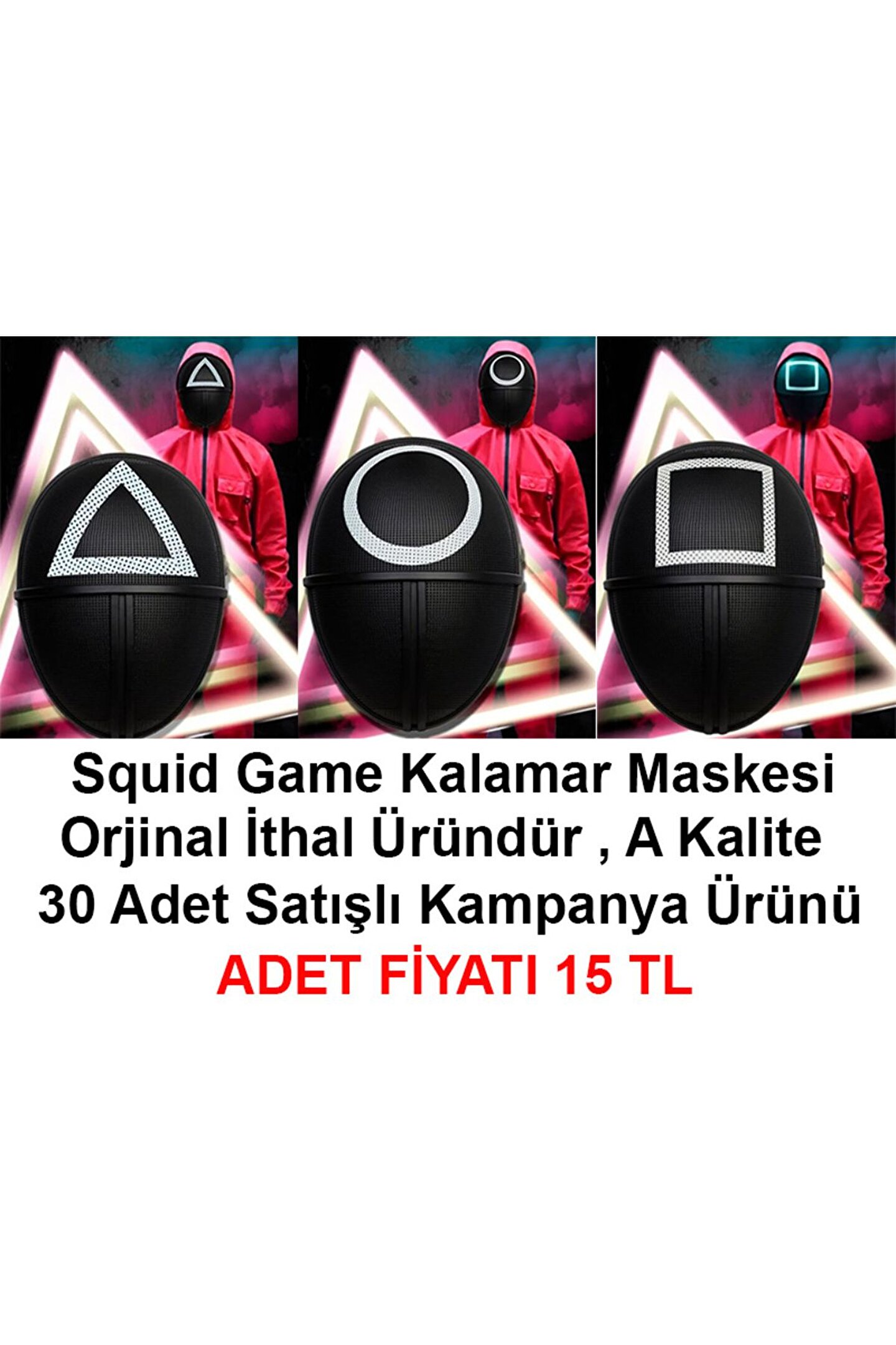 Samur Parti Parti Aksesuar & Kostüm Squidgamemaskesi 3 Model Toplam 30 Adet-