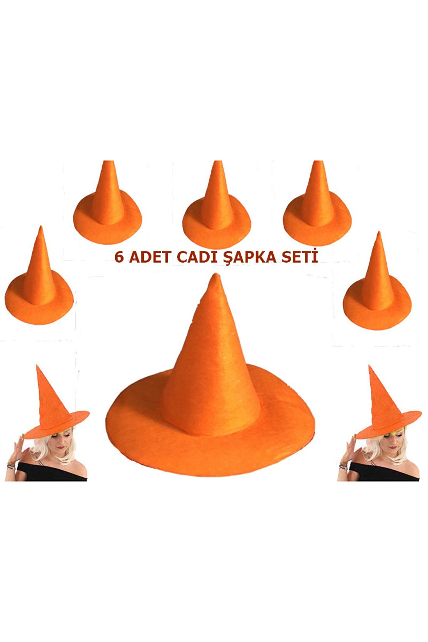 Samur Parti Parti Aksesuar & Kostüm Turuncu Renk Keçe Cadı Şapkası Yetişkin Çocuk Uyumlu 6 Adet