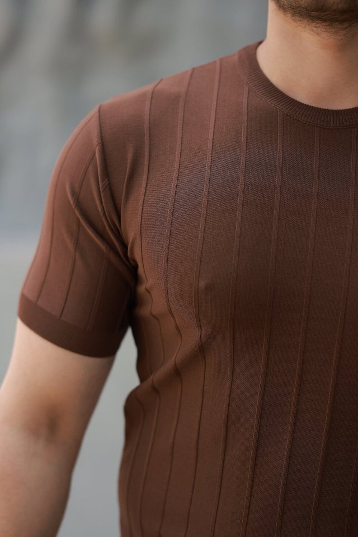 Erkek Kısa Kollu Bisiklet Yaka çizgili Triko Tişört