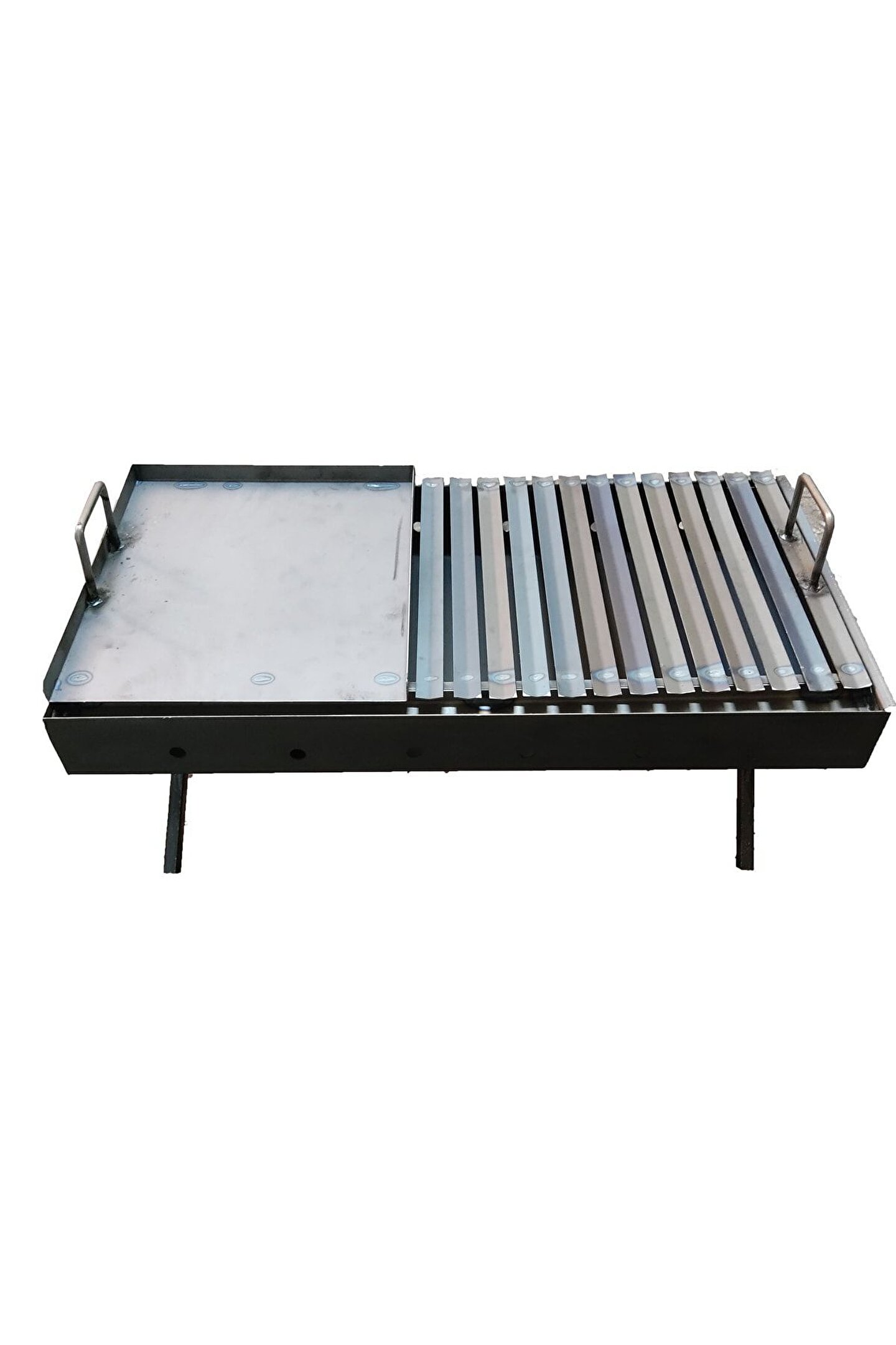 Kömür yakıtlı yapısı ile geleneksel mangal keyfini modern bir tasarımla buluşturur; Dayanıklı sac materyali sayesinde uzun ömürlü kullanım sunar ve dış etkenlere karşı yüksek direnç gösterir; 35x70 cm boyutlarındaki geniş yüzeyi, geniş aileler ve arkadaş grupları için idealdir; Kolay taşınabilirliği sağlayan katlanabilir tasarımı ile depolama ve taşıma konforu sağlar; Oluklu ızgara yapısı, etlerinizi eşit şekilde pişirerek lezzetli sonuçlar elde etmenize yardımcı olur;