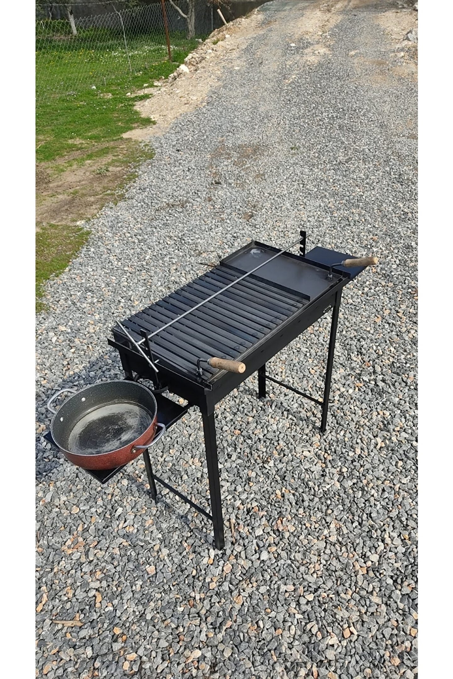 Dayanıklı sac malzeme kullanımı sayesinde uzun ömürlü ve sağlam bir yapı sunar; Kömürlü tasarımı ile kolayca ateş yakma ve kontrol etme imkanı sağlar, böylece yemeklerinizi dilediğiniz sıcaklıkta pişirebilirsiniz; 40x70 cm boyutlarındaki geniş yüzeyi, geniş aileler ve arkadaş grupları için idealdir; aynı anda birçok yemeği pişirme olanağı tanır; Oluklu ızgara yapısı sayesinde etlerinizi eşit şekilde pişirirken, dökülme ve yanma riskini azaltır; Pleyt tava ile birlikte gelen bu mangal seti, çeşitli yemeklerinizi pişirme esnekliği sunar ve mutfakta çok yönlülük sağlar;