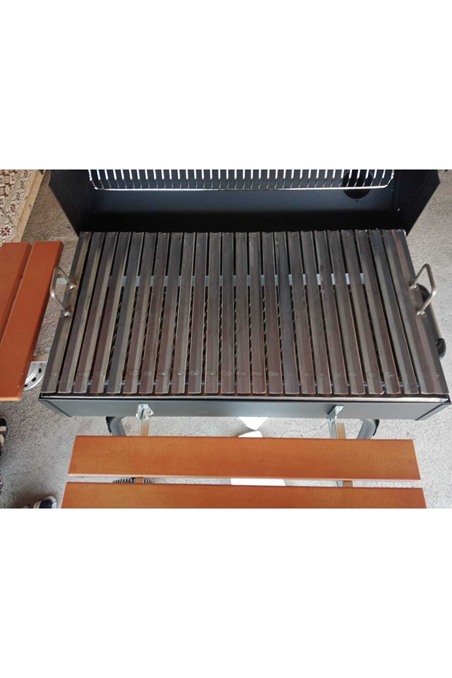 Fotoğrafta Guruss mangala uygun özel ölçülerde tek boyut 39x72cm ölçülerinde oluklu ızgara vardır. ; İsteğe göre tek parça küçük 24x39 cm ölçülerinde de yapılabilir, soru cevap kısmından yazabilirsiniz. ; 2 mm kalınlığında kalın kaliteli oluklu ızgara köfteci kokoreçci gibi işletmeler kullanır, uzun ömürlü evladiyelik sağlam bir ızgaradır, yamulmaz bozulmaz ve yapıştırmaz.;