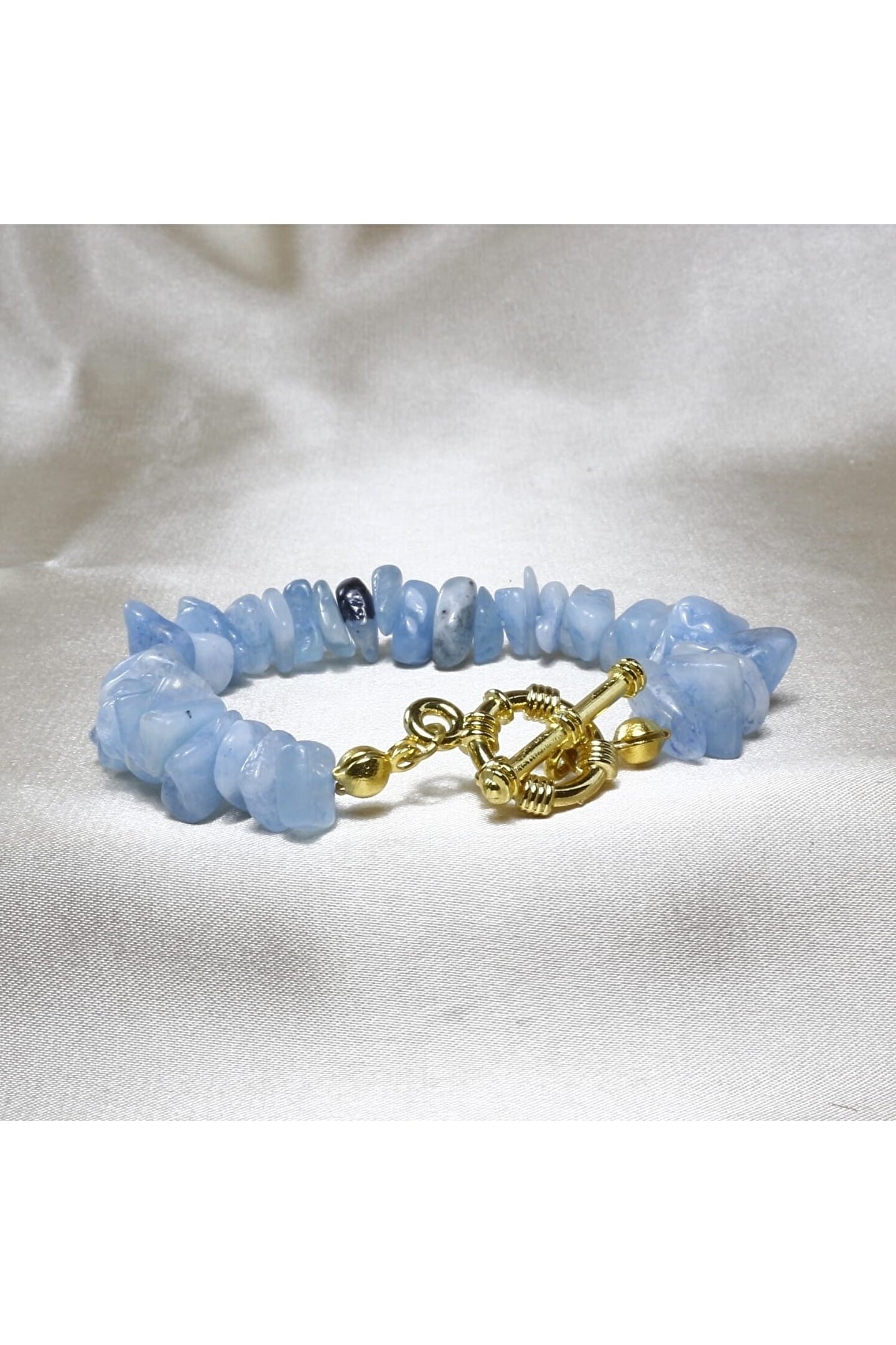 Akuamarin Kırık Taşlı Bileklik | Altın Kaplama Detaylı