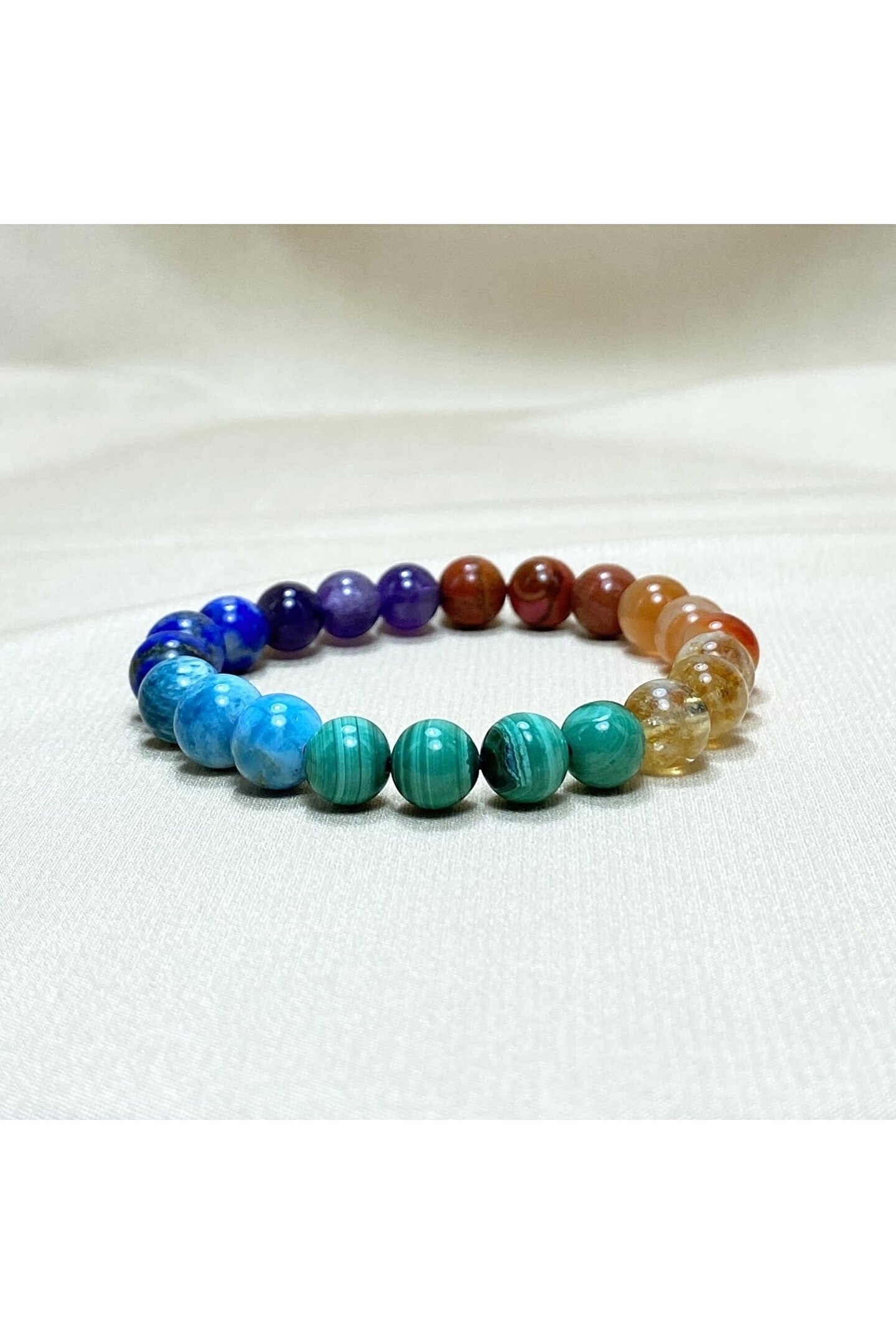 Çakra Bileklik, her bir çakranın ve renklerinin özelliğini Doğal Taş Çakra Bileklik içinde taşıması nedeniyle oldukça kullanışlı ve işlevseldir. ; Çakra Bileklik 7 farklı doğal taş içerir. ; Bu Doğal Taşlar ve Özellikleri renkleri nedeniyle bu bileklik içinde yer alırlar. ; Çakra Taşları, çakraları temsil eden 7 Doğal Taş Mor, Lacivert, Mavi, Yeşil, Sarı, Turuncu ve Kırmızı Çakra Renkleri içeren doğal taşlardan seçilir. ; Örnek vermek gerekirse yeşil rengi temsil etmek için Doğal Taş Bileklik içinde Yeşim Taşı, Akik Taşı, Malakit Taşı veya Aventurin Taşı kullanılabilir. ; Bu seçim yapılırken en kaliteli Doğal Taş sizler için seçilir ve özenle dizilir. ; Şu an incelediğiniz bileklikte ise Akik taşı, Sitrin taşı, Aventurin taşı, Apatit Taşı, Malakit taşı, Lapis taşı, Ametist taşı kullanılmıştır. ; Çakra Bileklik tane ebatları 8 mm'dir. ; Kök Çakra - Kırmızı - Jasper Mide Çakra - Turuncu - Akik Sinir Ağı Çakrası - Sarı - Sitrin Kalp Çakrası - Yeşil - Malakit Boğaz Çakrası - Mavi - Apatit Göz Çakrası - Lacivert - Lapis Lazuli Taç Çakra - Mor - Ametist;
