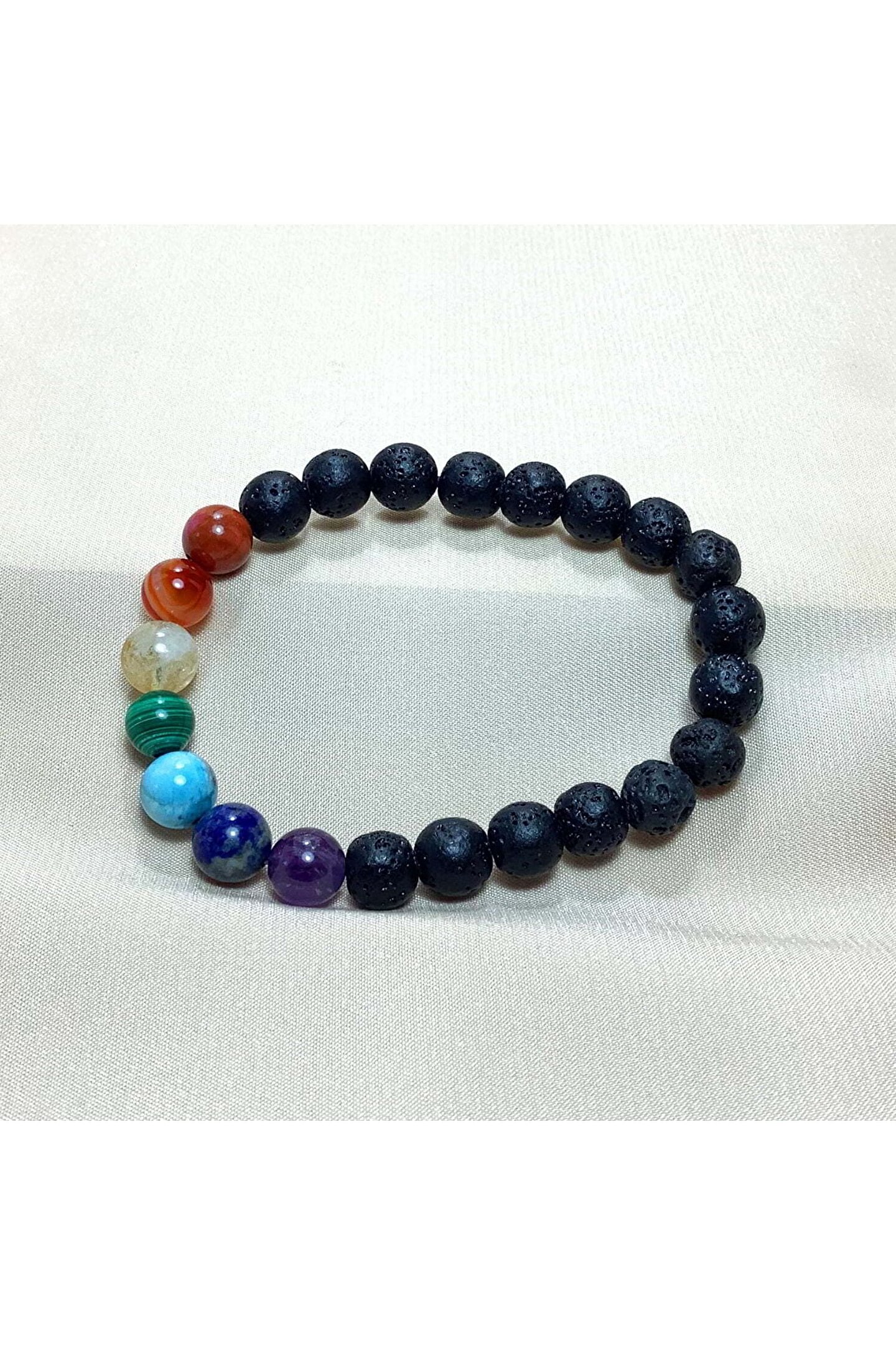 Dünyanın merkezinden gelen Lav Taşı ve Çakra taşları bir araya geldi, Çakra Doğal Taş Bileklik için yepyeni bir tarz dizayn etti.; Lav taşına Çakra Doğal Taş Bileklikte 7 Farklı Çakrayı temsilen 7 Farklı Renkte Doğal Taş eşlik etti.; Şifa, arınma, aura ve çakra temizliği için kullanabileceğiniz Oniks Doğal Taş Çakra Bileklik sizlerin beğenisine sunuldu.; Bileklik tane ebatları 8 mm'dir.; Kök Çakra - Kırmızı - Jasper ; Mide Çakra - Turuncu - Akik ; Sinir Ağı Çakrası - Sarı - Sitrin ; Kalp Çakrası - Yeşil - Malakit ; Boğaz Çakrası - Mavi - Apatit ; Göz Çakrası - Lacivert - Lapis Lazuli ; Taç Çakra - Mor - Ametist ;