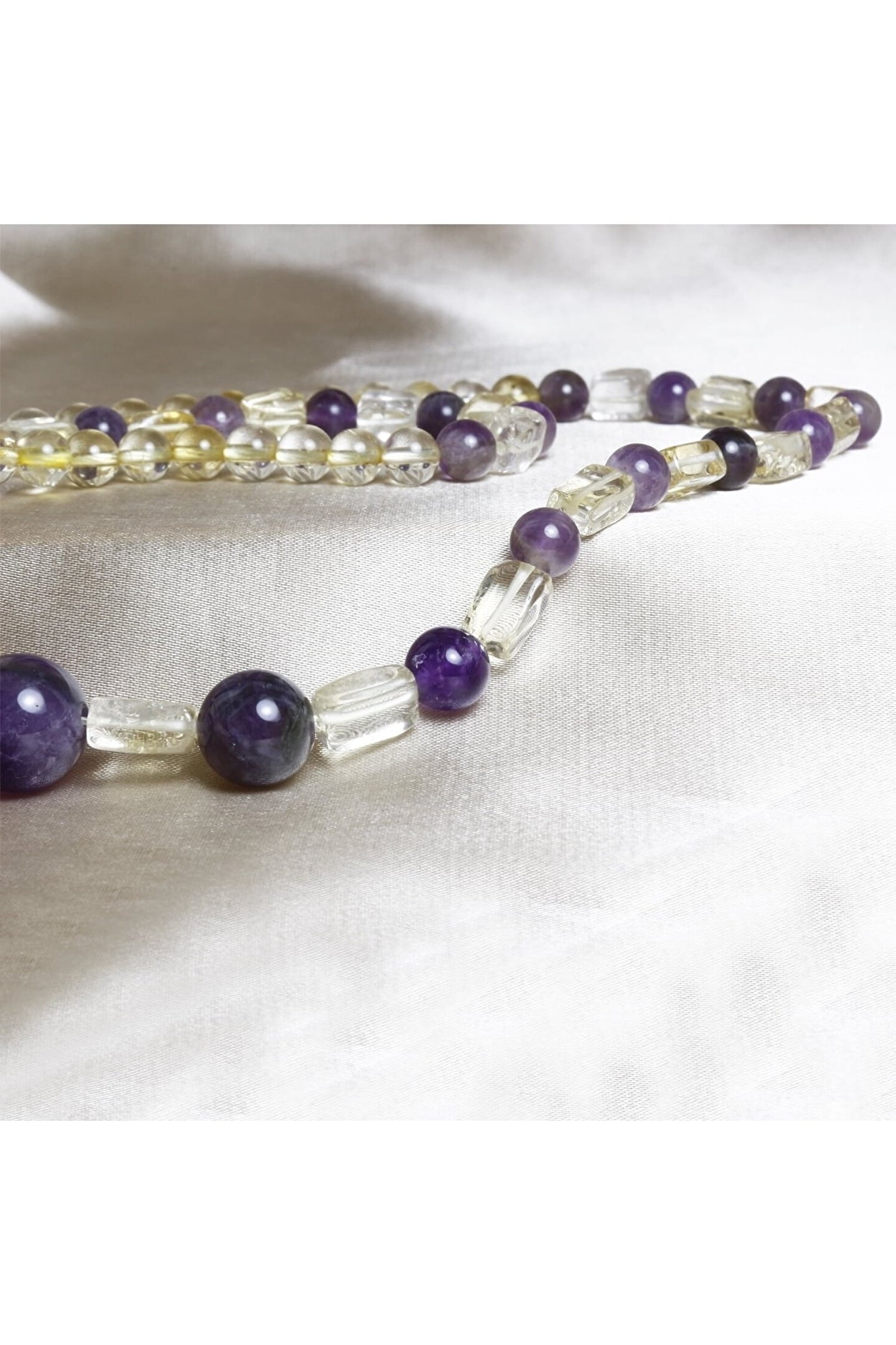 Doğal Sitrin taşı ve Ametist taşı kullanılarak tasarlanmış, şıklığı ve zarafeti bir arada sunan özel tasarım kolye; Her bir bileşeninde bulunan benzersiz desenler ve renk tonları ile göz alıcı bir görünüm sağlar; Doğal taş materyali sayesinde her kolye, eşsiz ve otantik bir dokunuşla öne çıkar; Hem günlük kullanım hem de özel günlerde tercih edilebilecek ideal aksesuar seçeneği;
