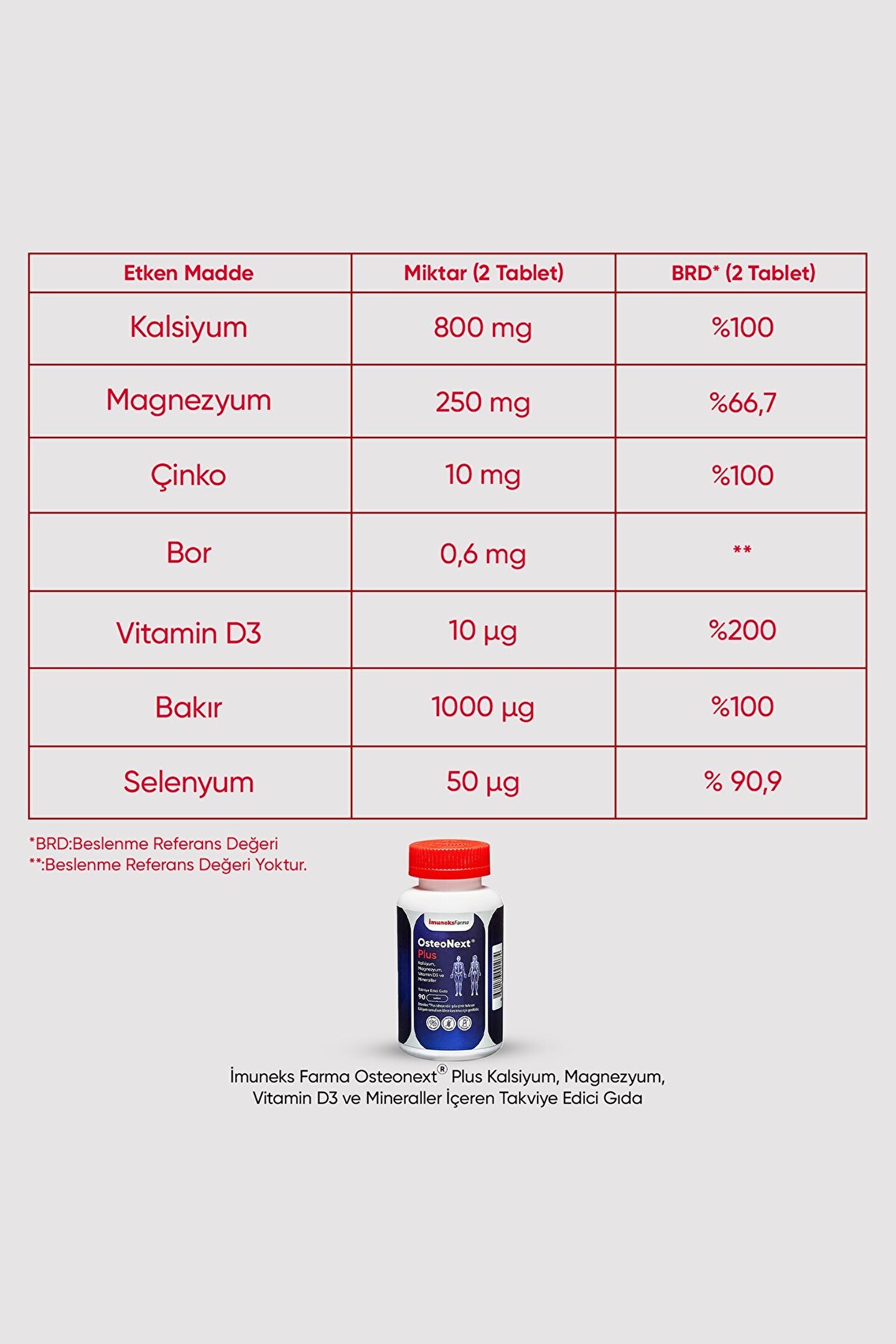 İmuneks Farma Osteonext®Plus Kalsiyum, Magnezyum, Vitamin D3 ve Mineraller içeren Takviye Edici Gıda x 3 Adet