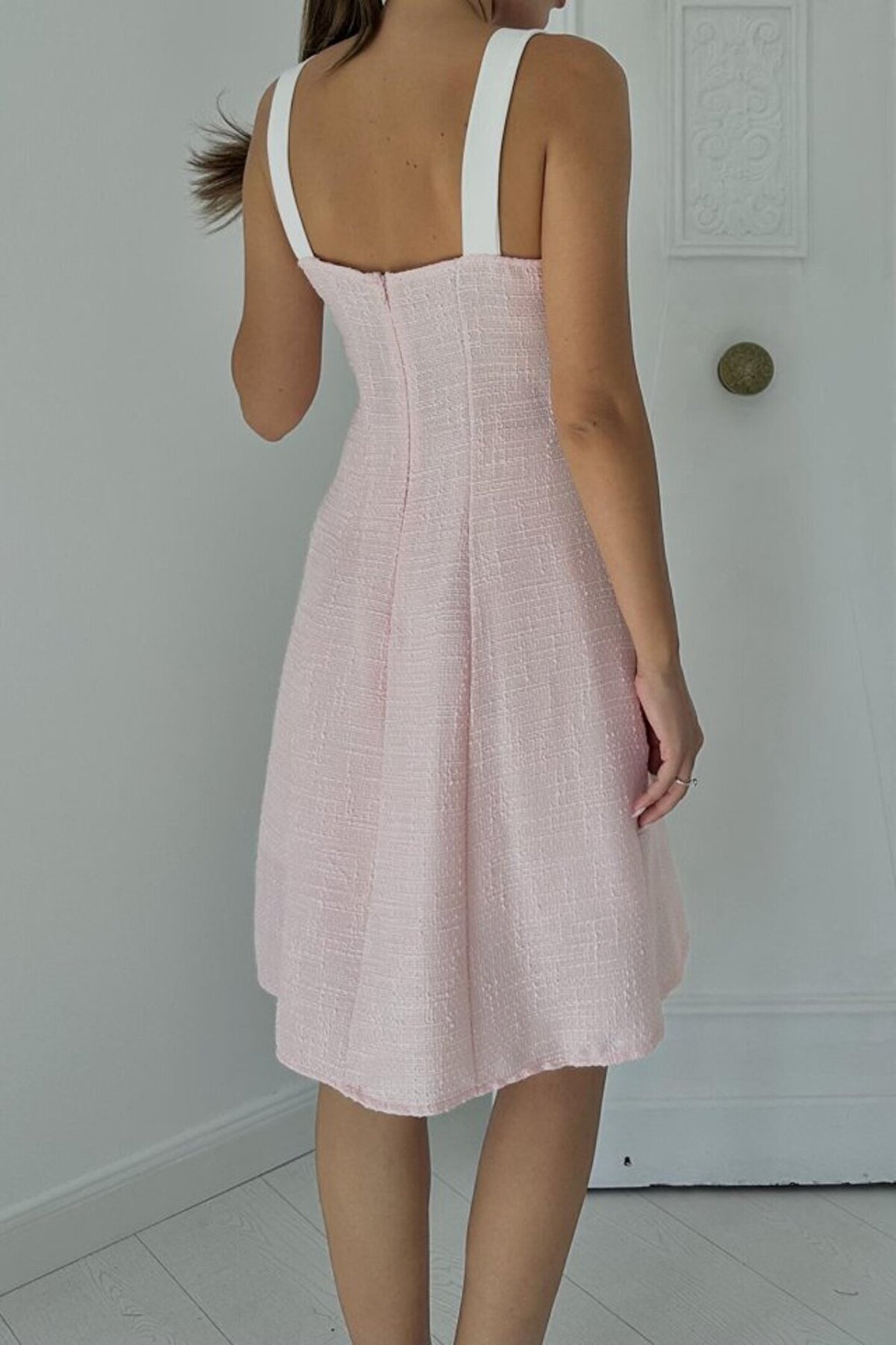 İpeksi munn collection Pudra Ekru Süs Cepli Askılı Elbise
