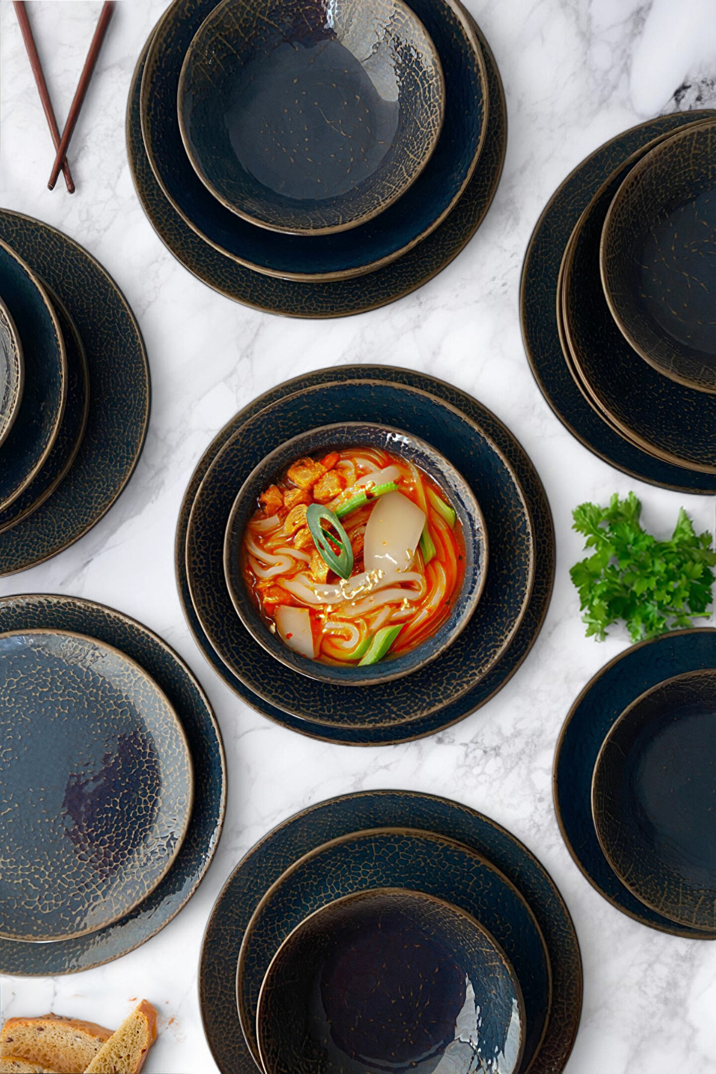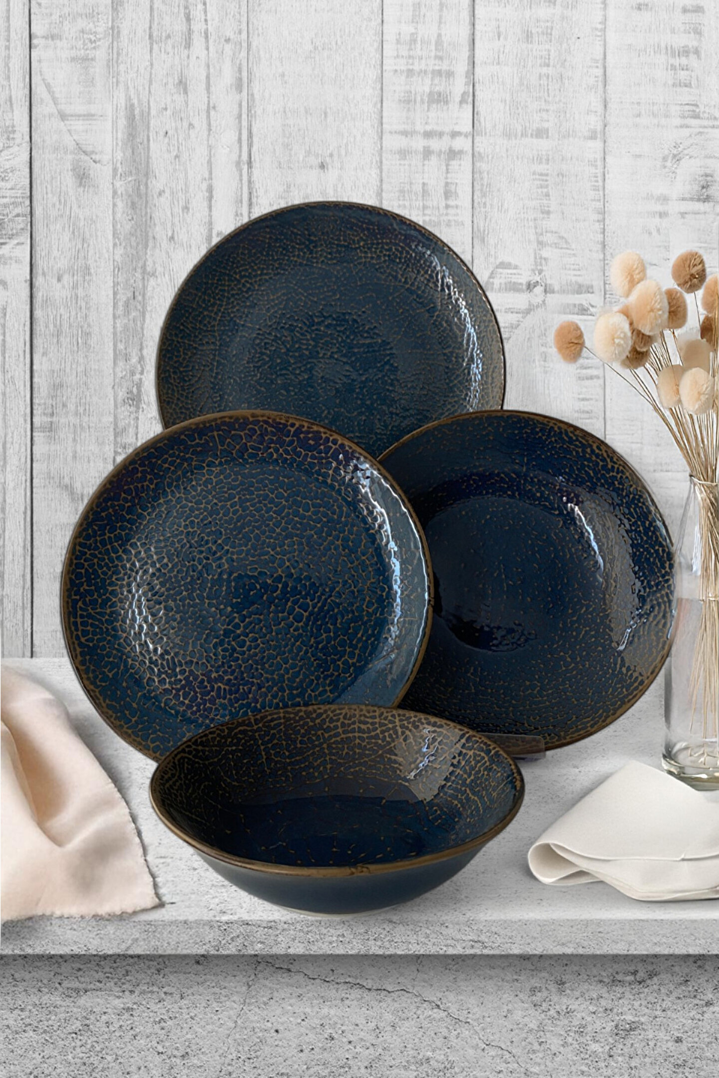 6 adet porselen servis tabağı 26cm ; 6 adet porselen pasta tabağı 21 cm ; 6 adet porselen yemek tabağı 22cm ; 6 adet porselen çorba kasesi 16cm ;