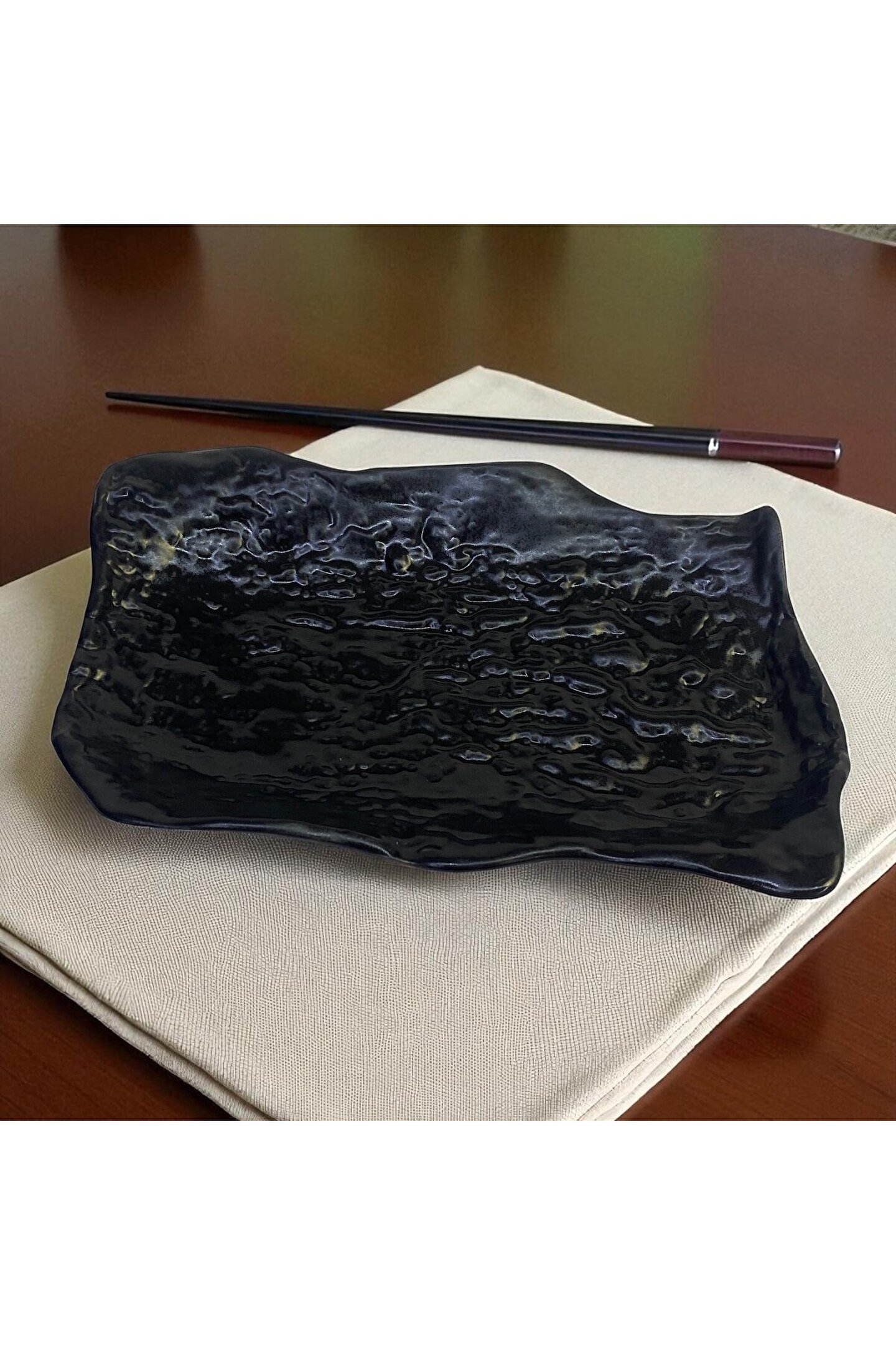 İrea Porselen Wood Siyah 25cm Dikdörtgen Tabak Sushi Tabağı