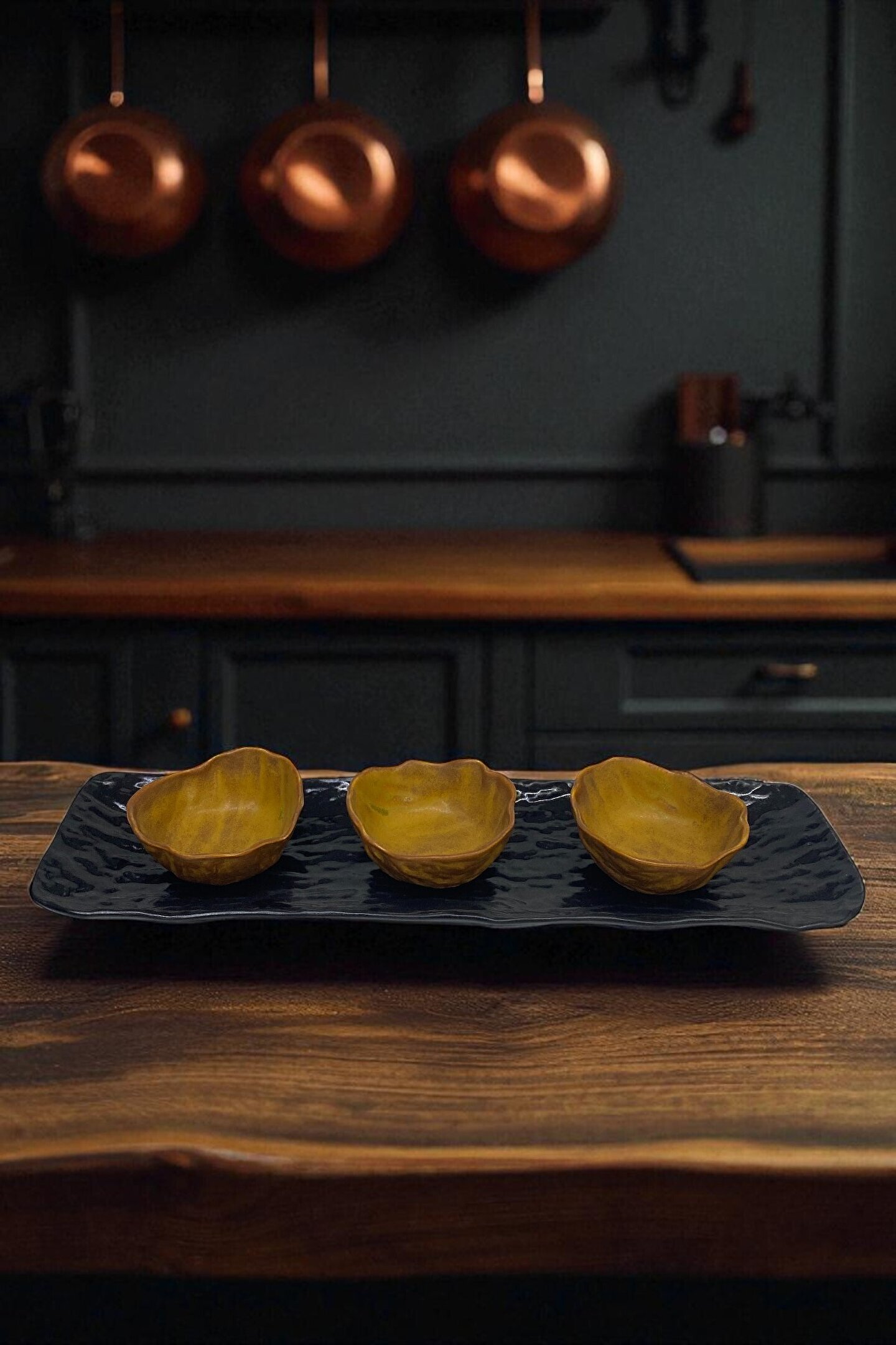 Wood 41 cm Porselen Kayık Sunum Tabağı 1 Adet / Porselen Sosluk Kase 9cm 3 Adet