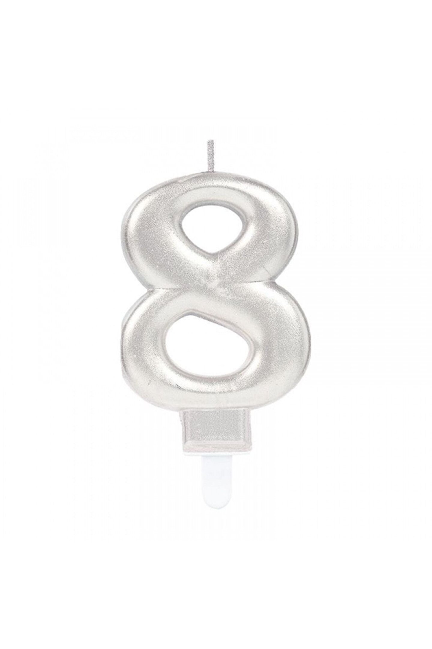Parti Aksesuar Parti Malzemeleri 8 Rakam Mum Gümüş Renk