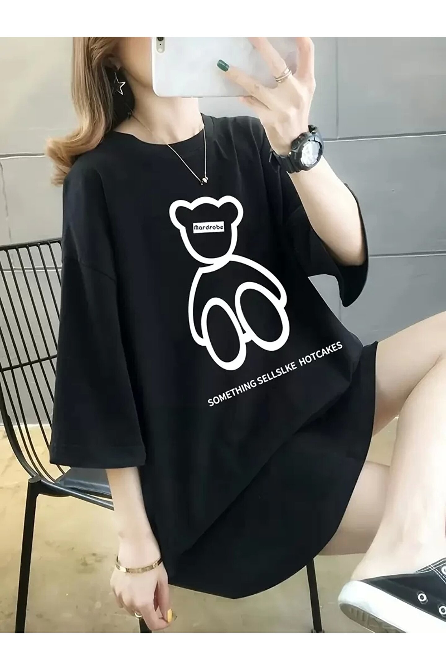 IVORA WEAR 201 Penye Compack Ön Arka Baskılı Oversize Bisiklet Yaka T-shirt - Siyah