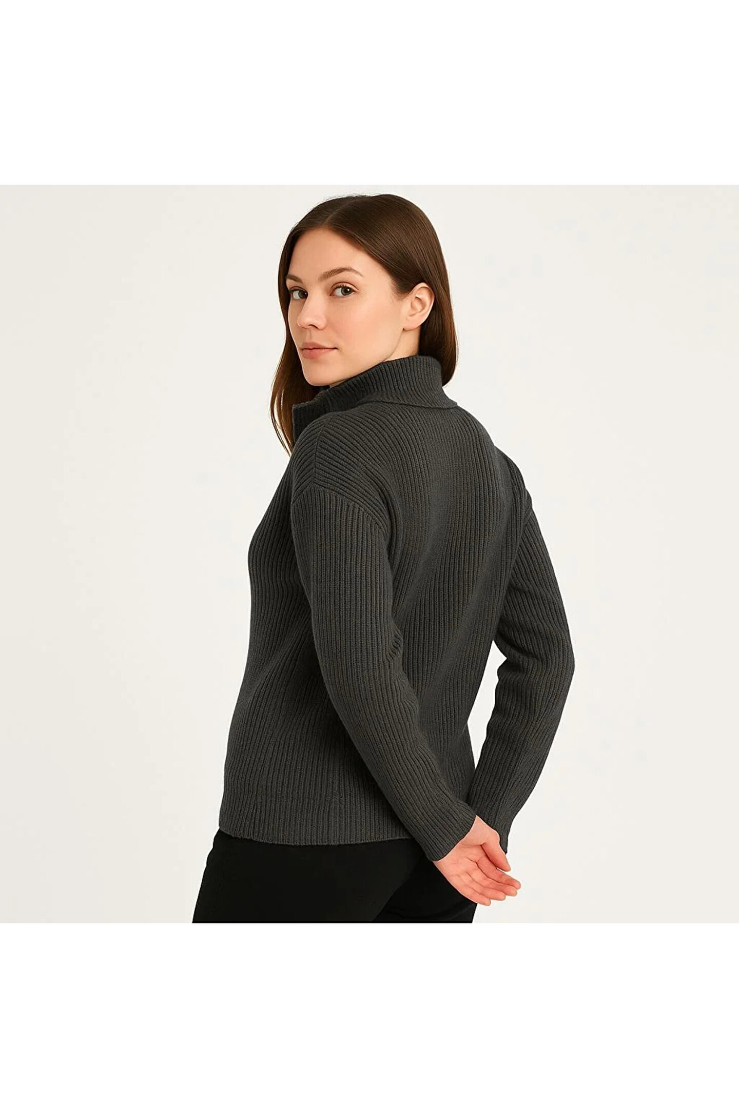 IVORA WEAR KADIN Yarım Fermuarlı Triko Kazak – Selanik Örgü, Dik Yaka, Pamuklu Dokuma, Oversize Uzun Kollu Kışl