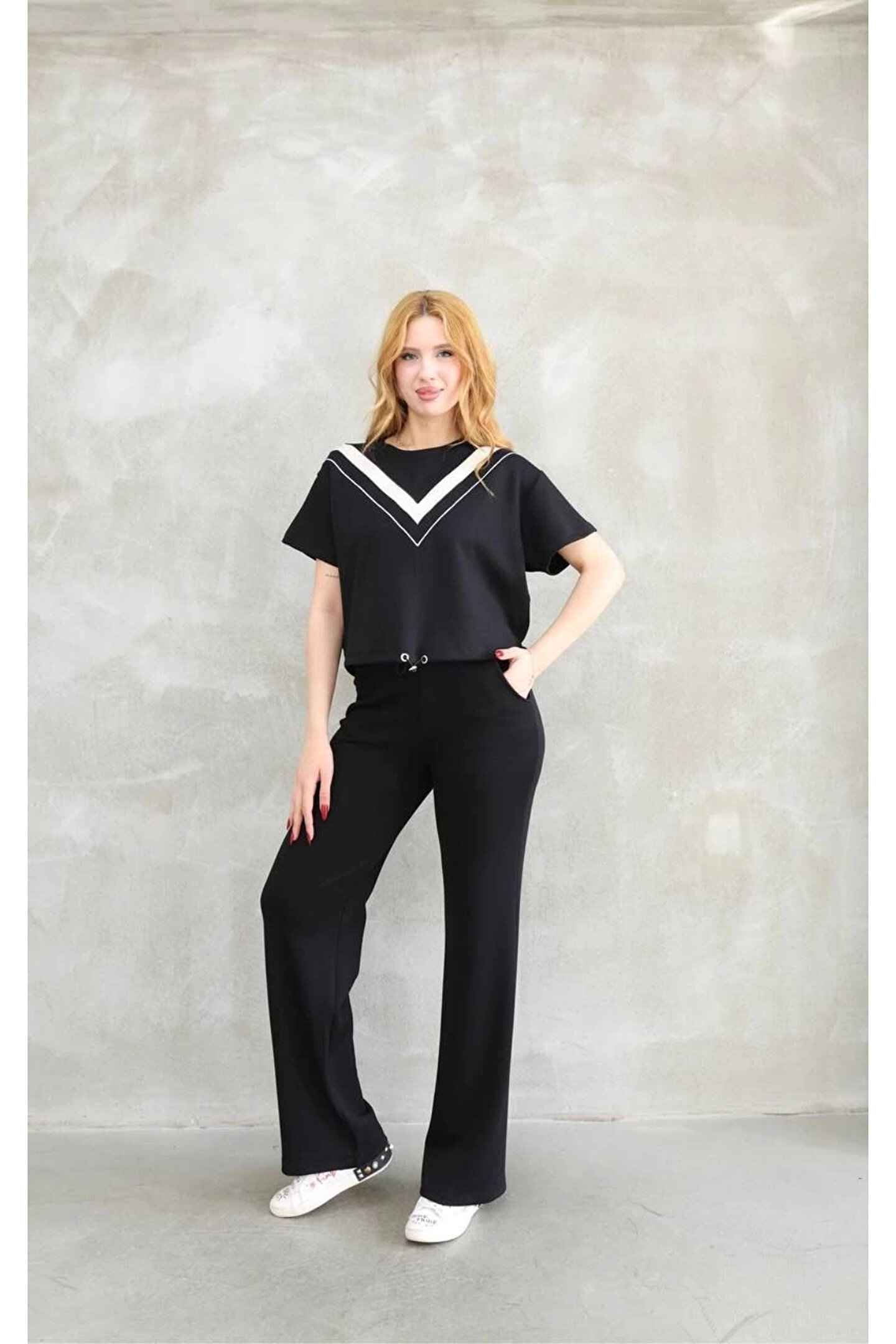 IVORA WEAR Osy Modal Yumuşak dokulu Kumaş Bisiklet Yaka Parçalı detaylı Kısa Kollu Takım - Siyah