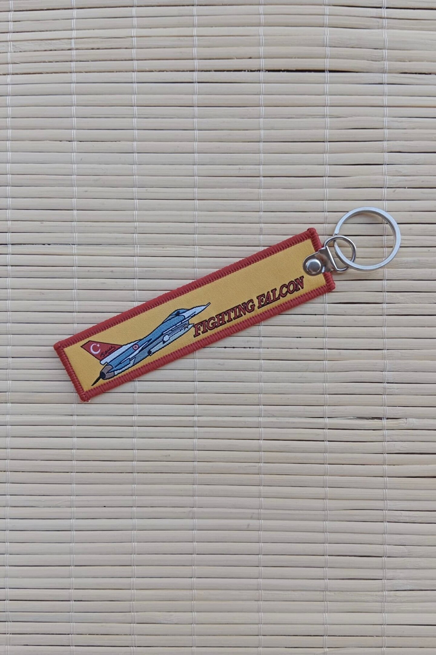 Fighting falcon f 16 demo team yazili sari kirmizi nakis bez anahtarlik