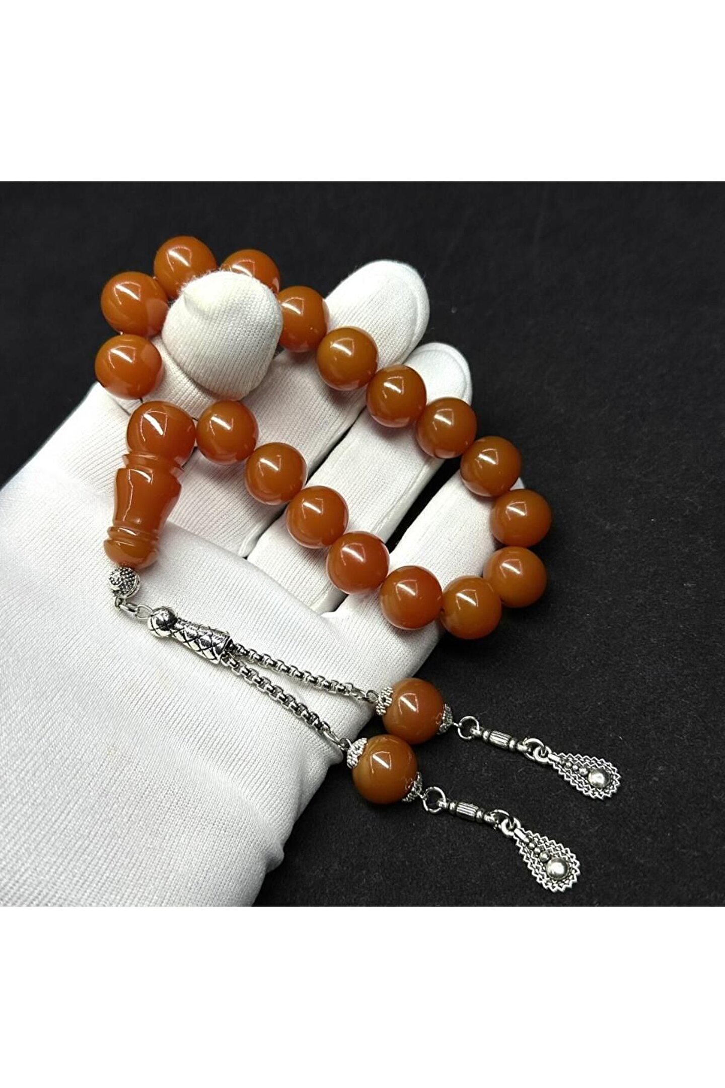 4 Parmak Genişliğinde Maskot Küre Model 13-13mm Püsküllü Sıkma Kehribar Tesbih