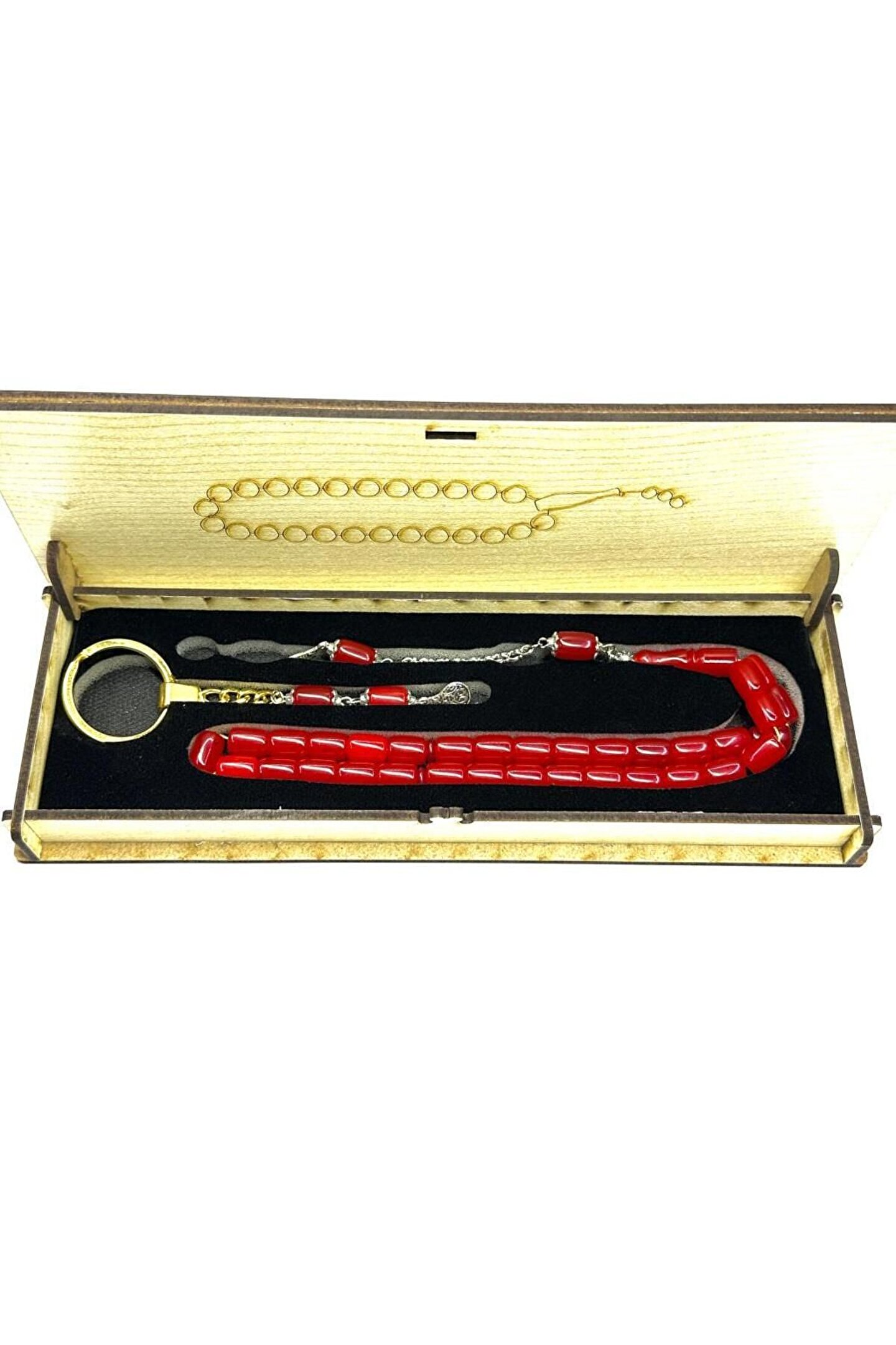 Ahşap Kutuda Anahtarlık Kombinli Kesme Model Püsküllü 8-11mm Sıkma Kehribar Tesbih
