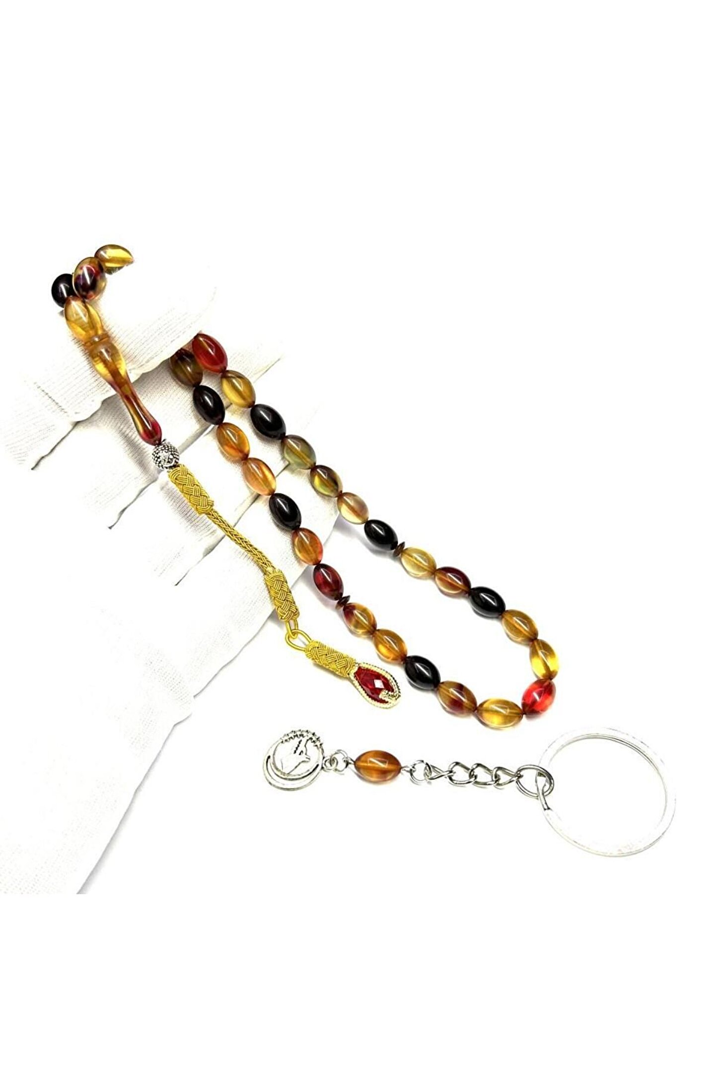 Anahtarlık Kombinli Beyzi Model Kazaz Püsküllü 7-11mm Ateş Sıkma Kehribar Tesbih