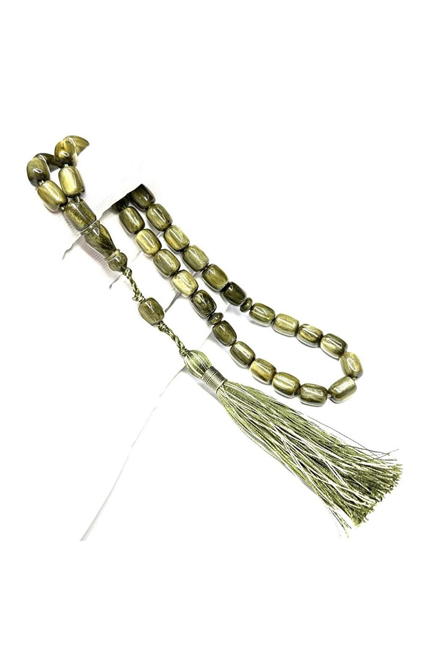 Kapsül Model İp Püsküllü 9-11mm Dik Hareli Damarlı Sim Yaldızlı Sıkma Kehribar Tesbih