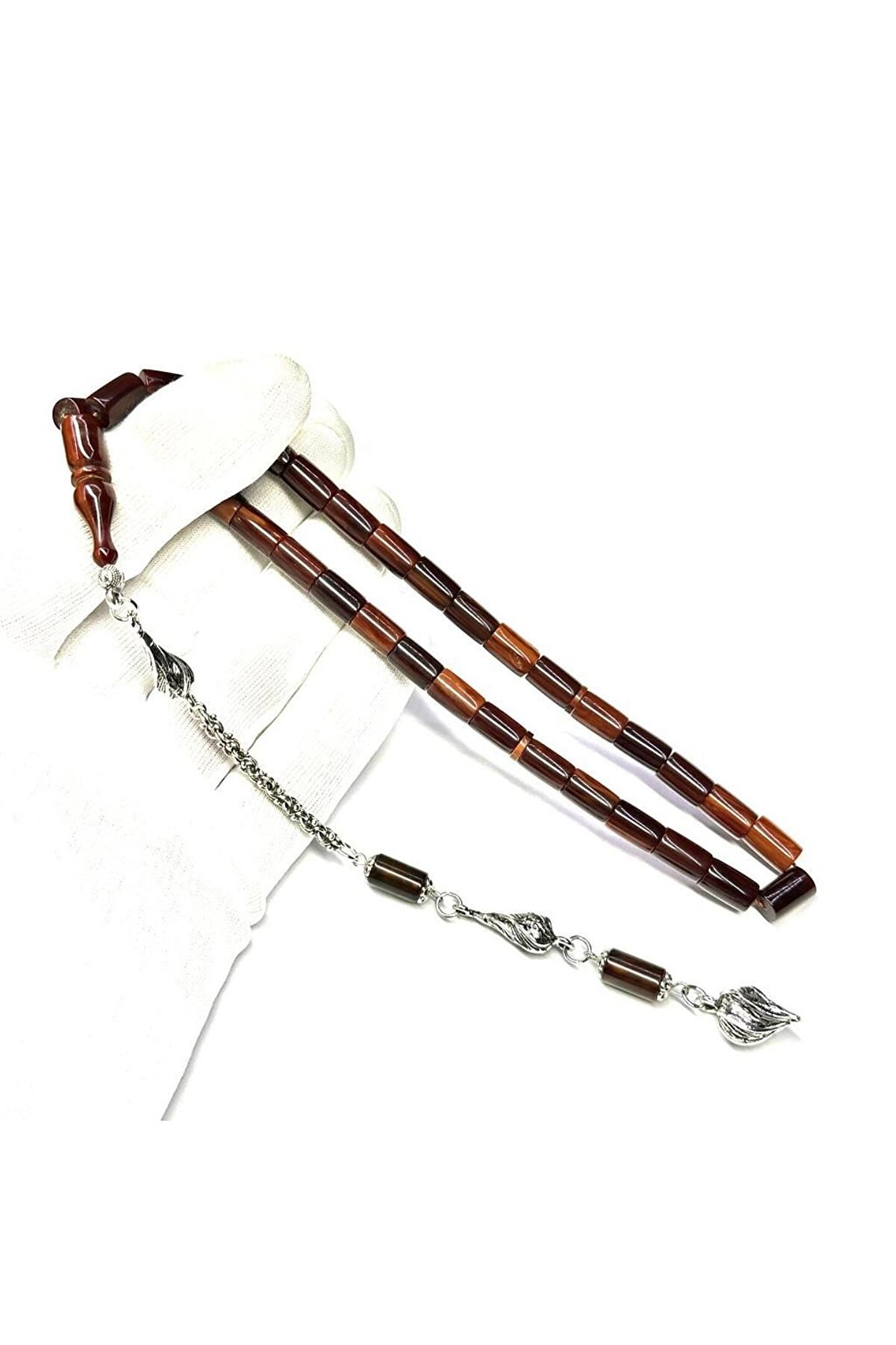 Kesme Model Püsküllü 7-10mm Dik Hareli Damarlı Sıkma Kehribar Tesbih