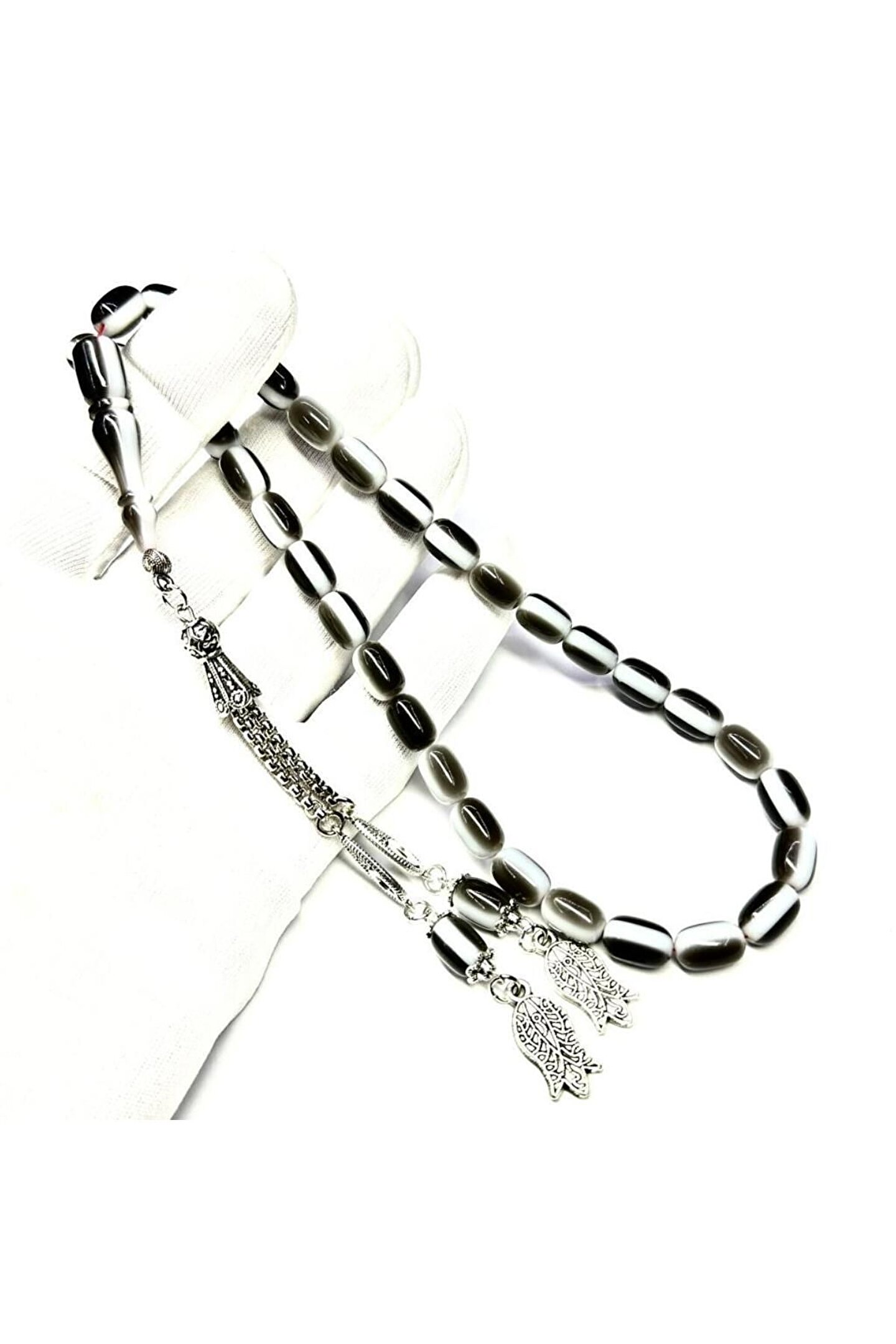 Siyah Beyaz Taraftar Renk Karması 7-11mm Püsküllü Kapsül Model Tesbih