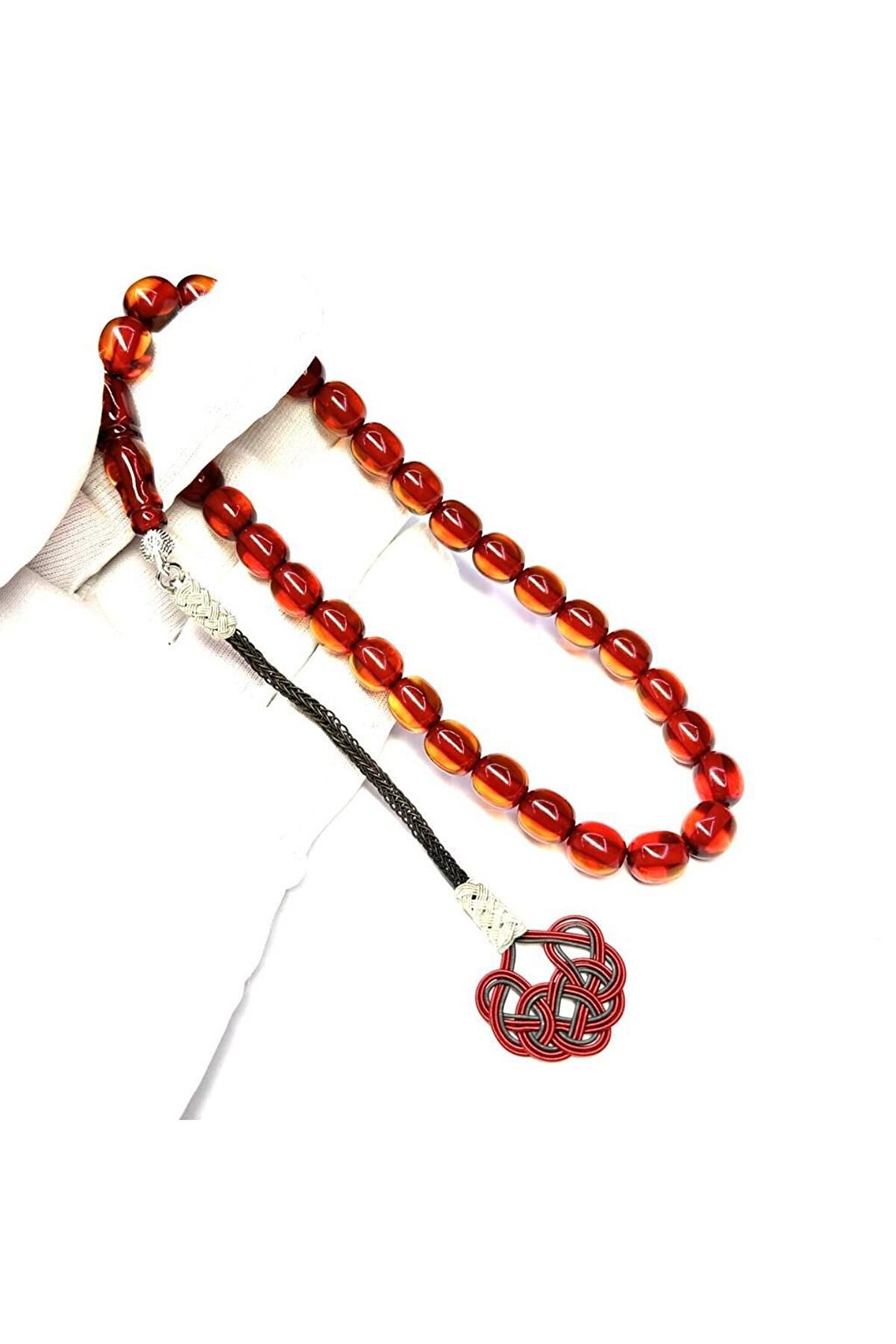 Şükrü Baba Usta İşi Çubuk Malzeme Kazaz Püsküllü Kapsül Model 9-10mm Sıkma Ateş Kehribar Tesbih