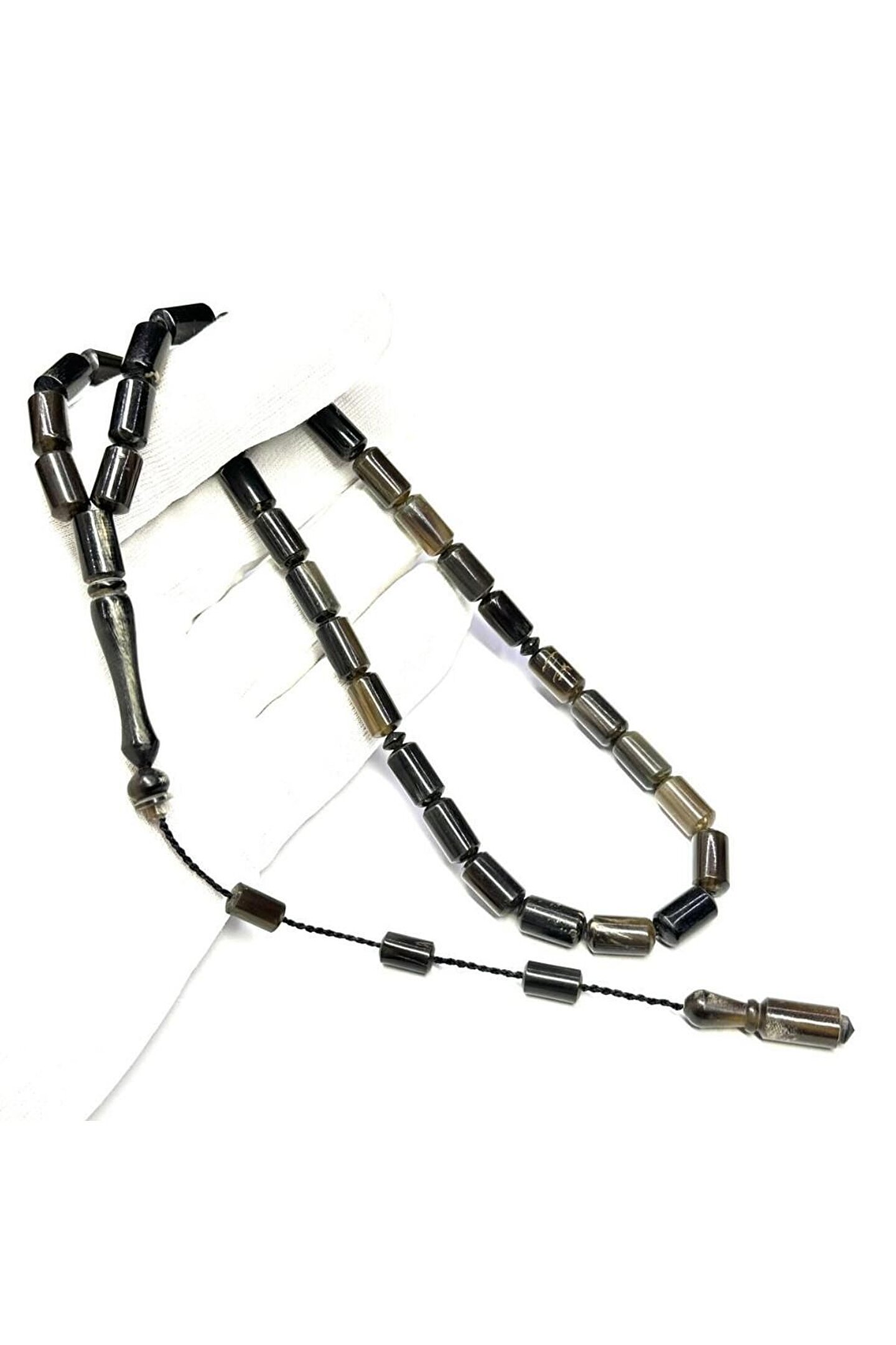 Uçlu Kesme Model Sistemli 7-12,5mm Fosil Malzeme Buffalo Boynuzu Usta İşi Tesbih