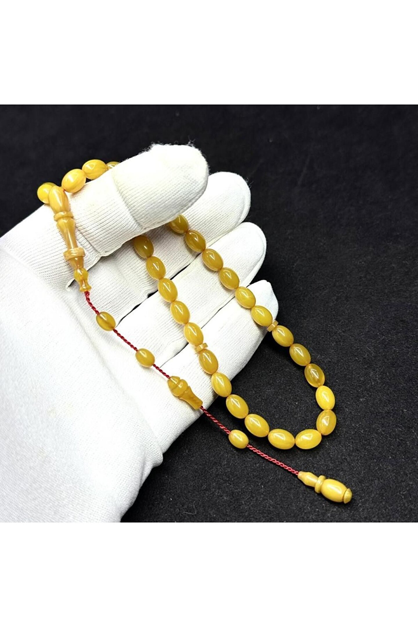 Usta İşi Sistemli İmamesi Halkalı Beyzi Model 6-9mm Hareli Sıkma Kehribar Tesbih