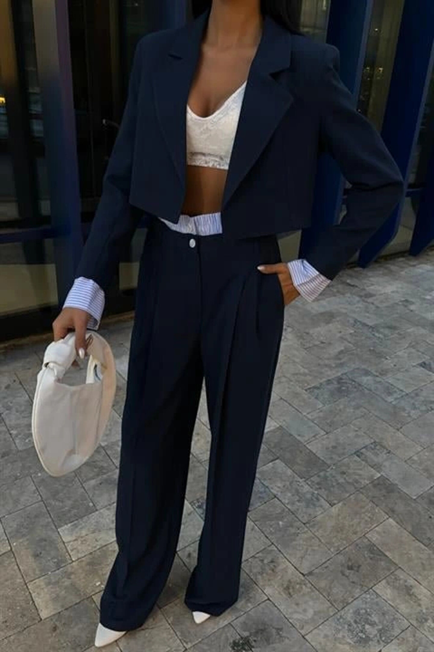Garni Detaylı Crop Ceketli Takım 10075