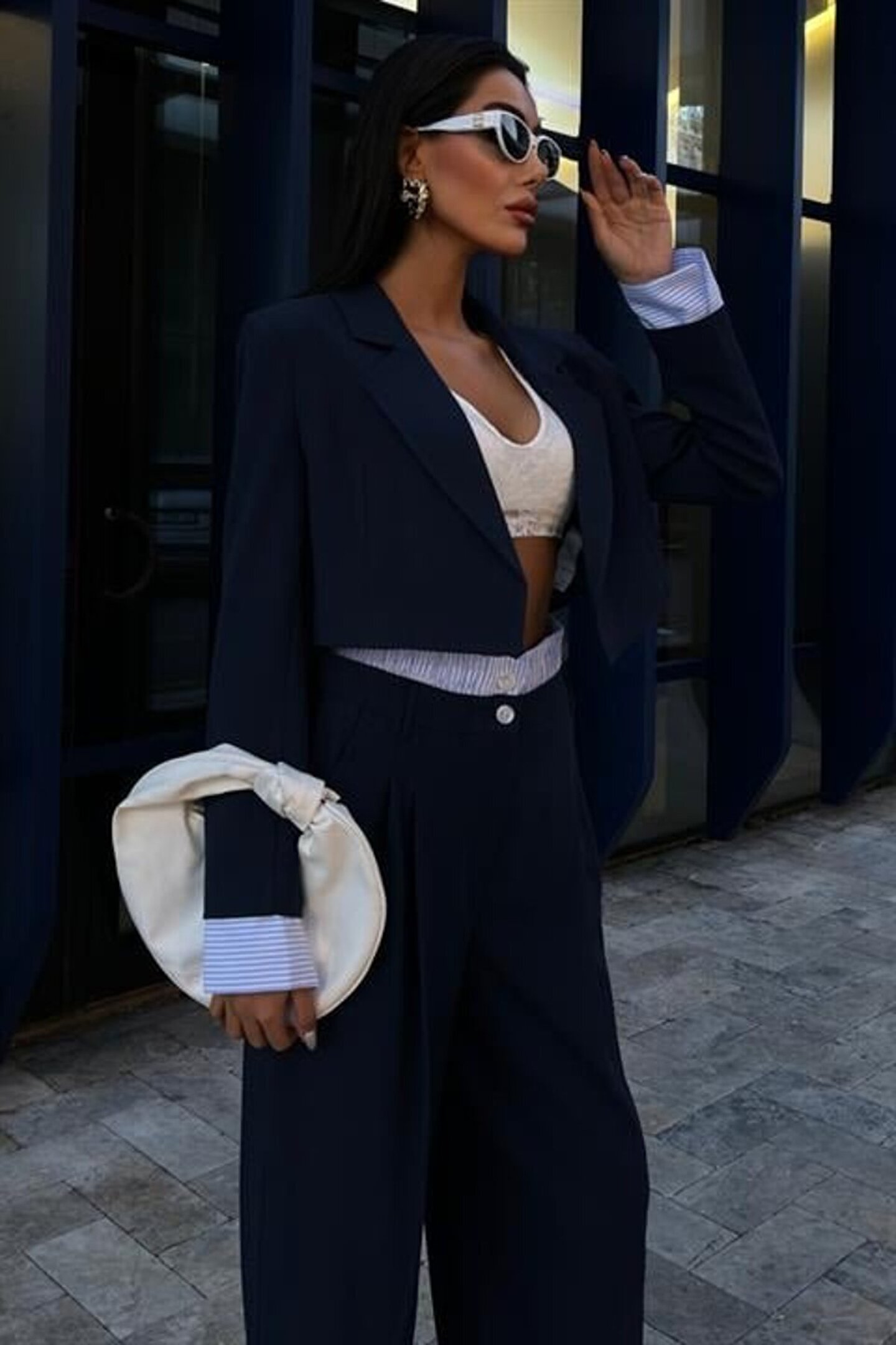 Garni Detaylı Crop Ceketli Takım 10075 Modanın Öncüsü Kadın Giyim Markası Misperry'e hoşgeldiniz! Misperry, kadınların tarzlarını ifade etmelerine ve güçlü bir duruş sergilemelerine olanak tanıyan bir markadır.; 2019 yılından bu yana sektörde varlığını sürdüren firmamız, yenilikçi tasarımları ve kaliteli ürünleriyle dikkat çekiyor.; Misperry olarak amacımız, her kadının kendine özgü tarzını yansıtabileceği, güvenilir ve şık giyim seçenekleri sunmaktır.; Koleksiyonlarımızda her zevke hitap eden parçaları bulabilirsiniz.; Günlük hayatta rahatlıkla tercih edilebilecek şık elbiselerden iş görüşmelerinde stilinizi tamamlayacak takım elbiselere, spor giyimden abiye modellere kadar geniş bir ürün yelpazemiz bulunmaktadır.; Tasarımlarımızı oluştururken moda trendlerini yakından takip ediyor, farklı tarzlara ve bedenlere uygun seçenekler sunmaya özen gösteriyoruz.; Aynı zamanda kalite ve dayanıklılık da önceliklerimiz arasındadır.; Her parça, titizlikle seçilen kumaşlar ve dikkatle işlenen detaylarla özenle üretilmektedir.; Müşteri memnuniyeti bizim için en önemli önceliktir.; Profesyonel müşteri hizmetleri ekibimiz, her adımda size yardımcı olmak ve alışveriş deneyiminizi en üst düzeye çıkarmak için buradadır.; Siz değerli müşterilerimizin geri bildirimleri, bizi daha da ileriye taşımak için önemli bir kaynaktır.; Misperry olarak, sadece giyimde değil, aynı zamanda kadınların güçlendirilmesi ve kendilerini ifade etmeleri konusunda da bir misyon taşıyoruz.; Her kadının kendi tarzını keşfetmesine ve kendine güvenle adım atmasına yardımcı olmak için buradayız.; Misperry'de her detayı düşünülmüş, şıklığı ve rahatlığı bir arada sunan parçalarla dolu koleksiyonlarımızı keşfetmek için sizi mağazamıza bekliyoruz.; Siz de ailemize katılın ve tarzınızı keşfedin!