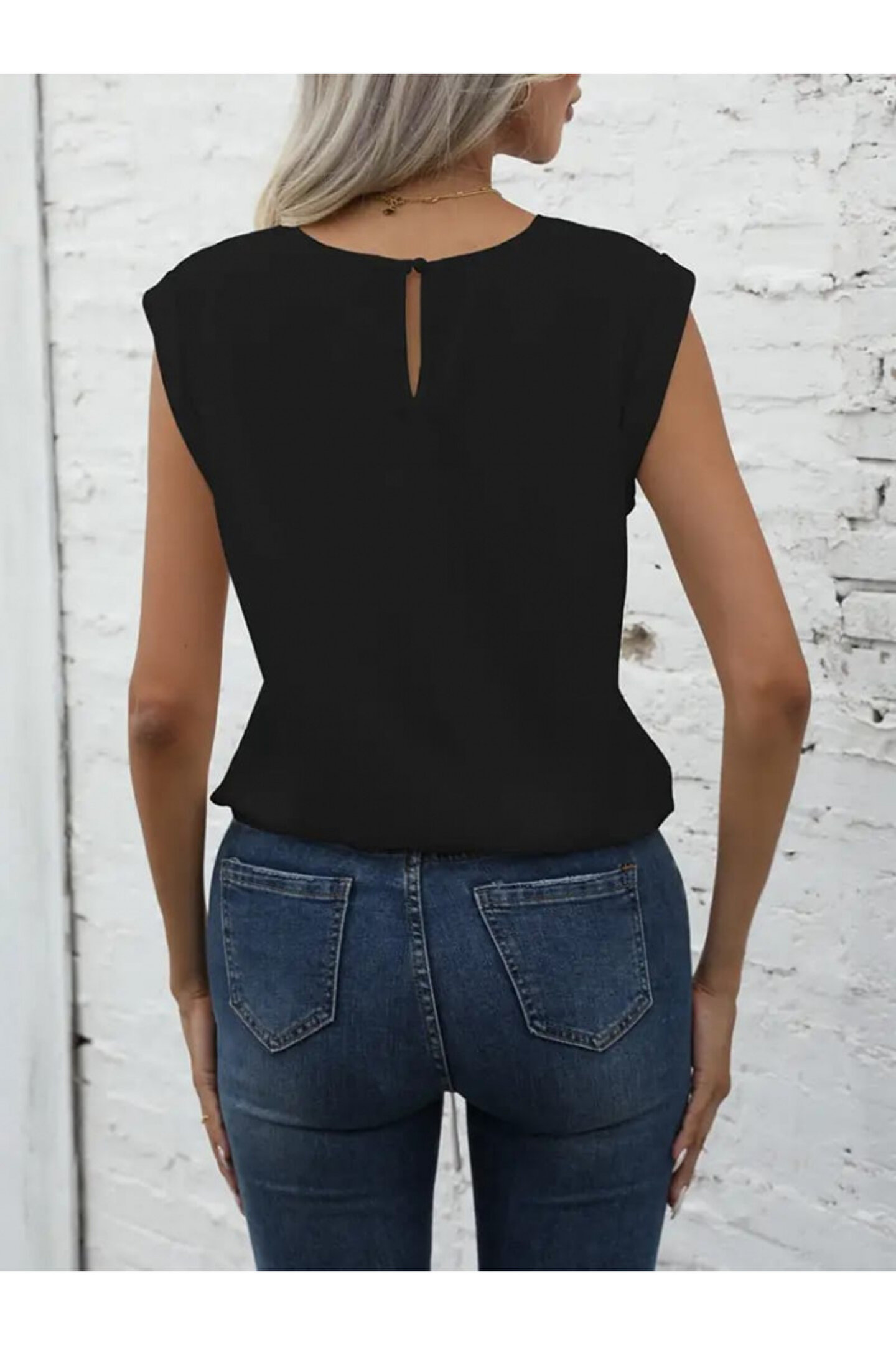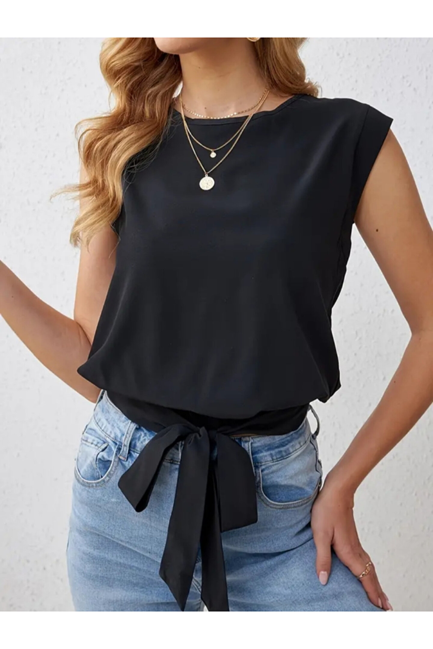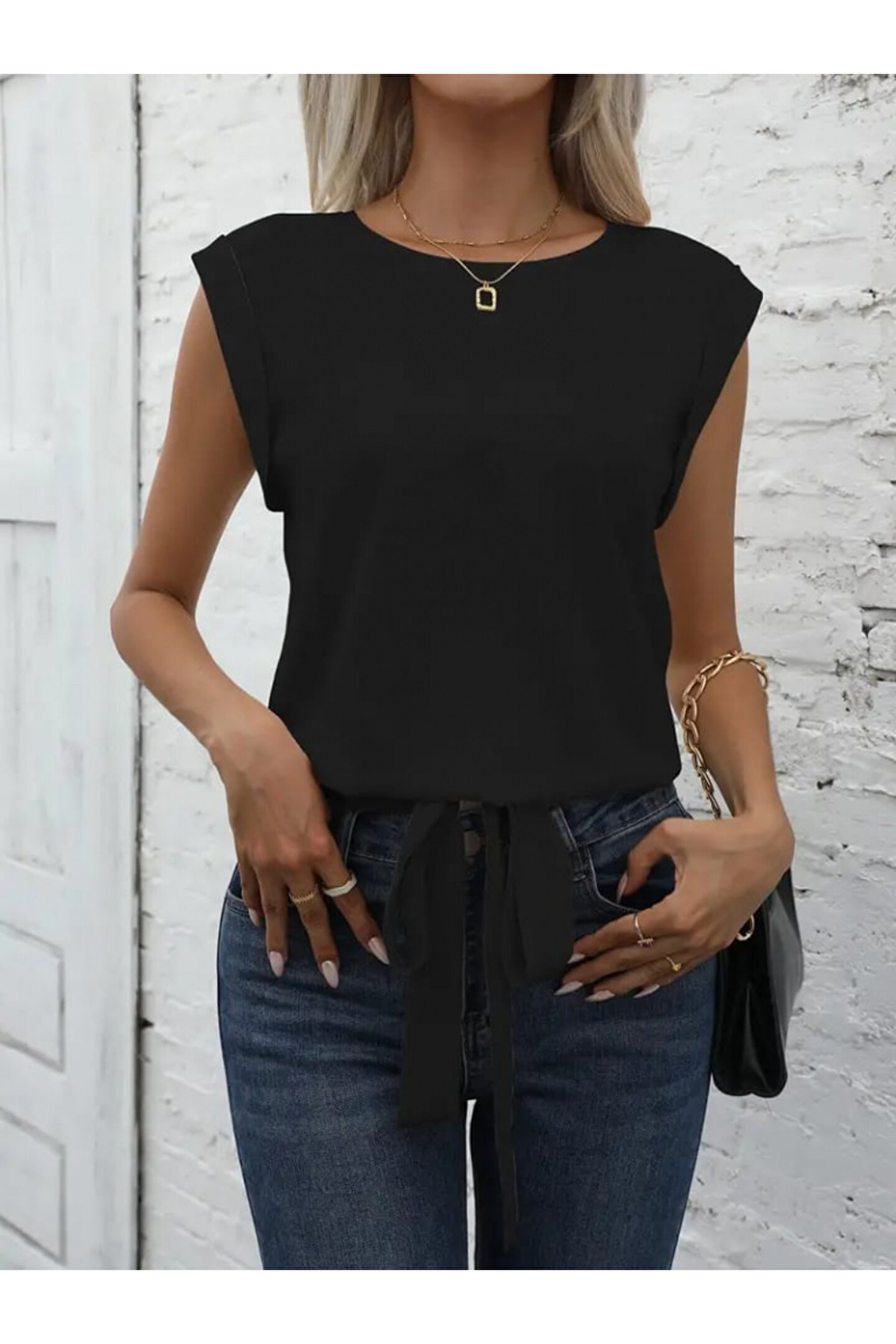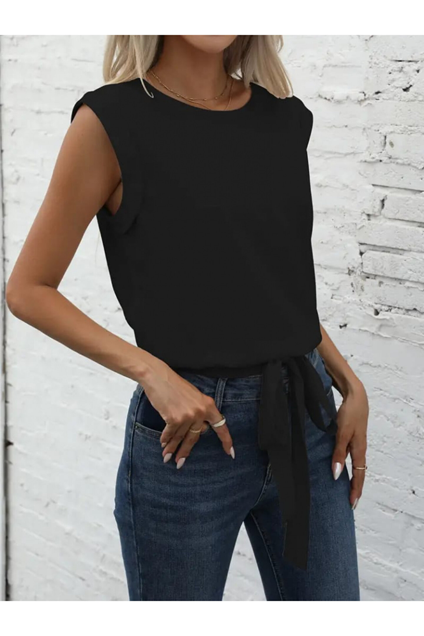 Kadın Sıfır Kol Etek Ucu Bağlama Detay Ithal Krep Bluz