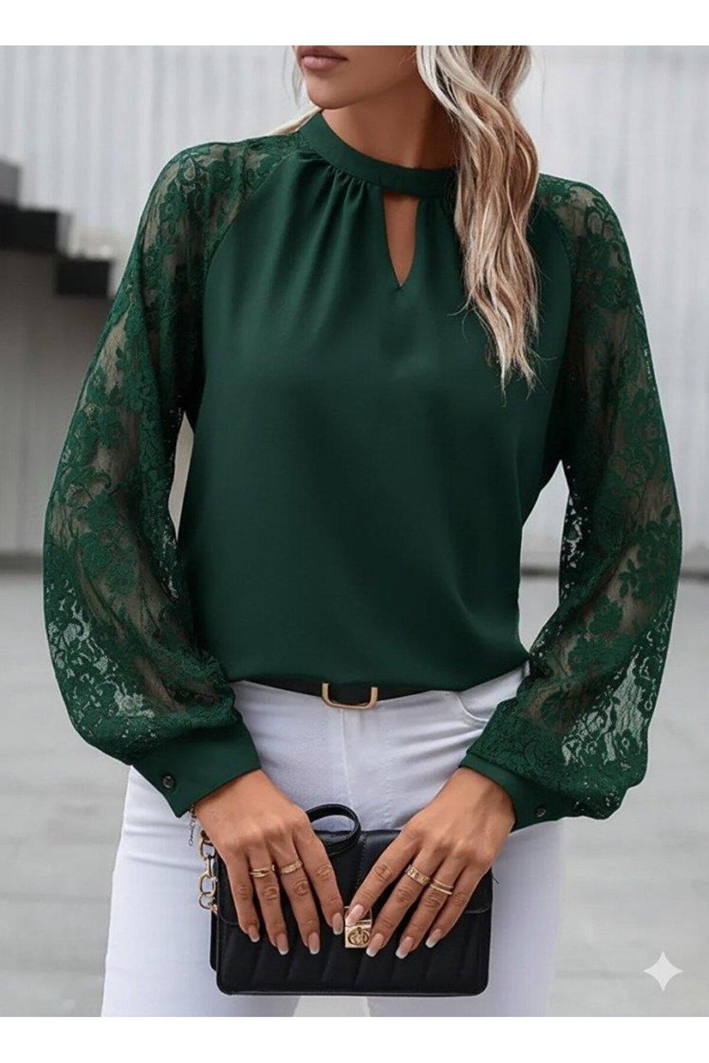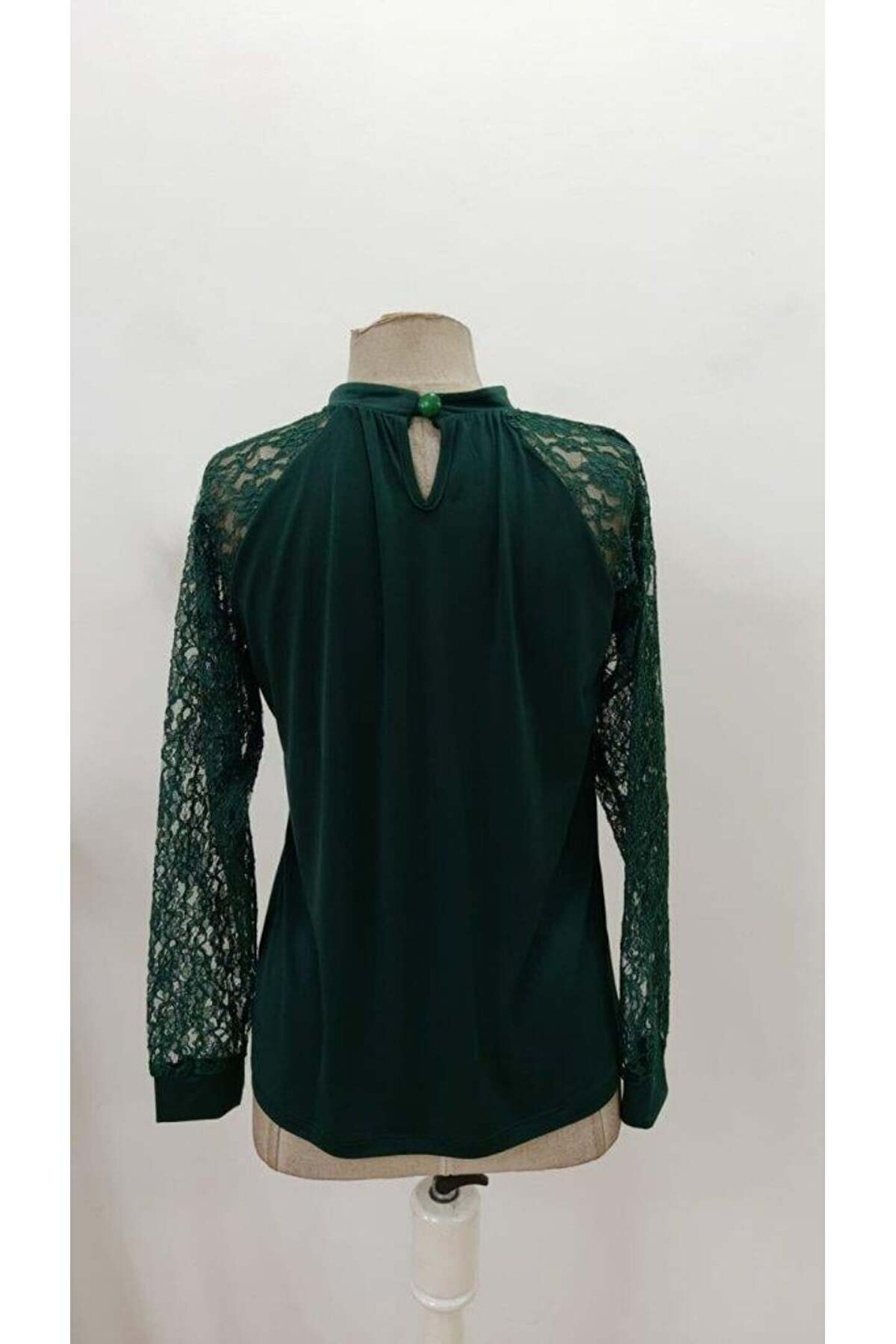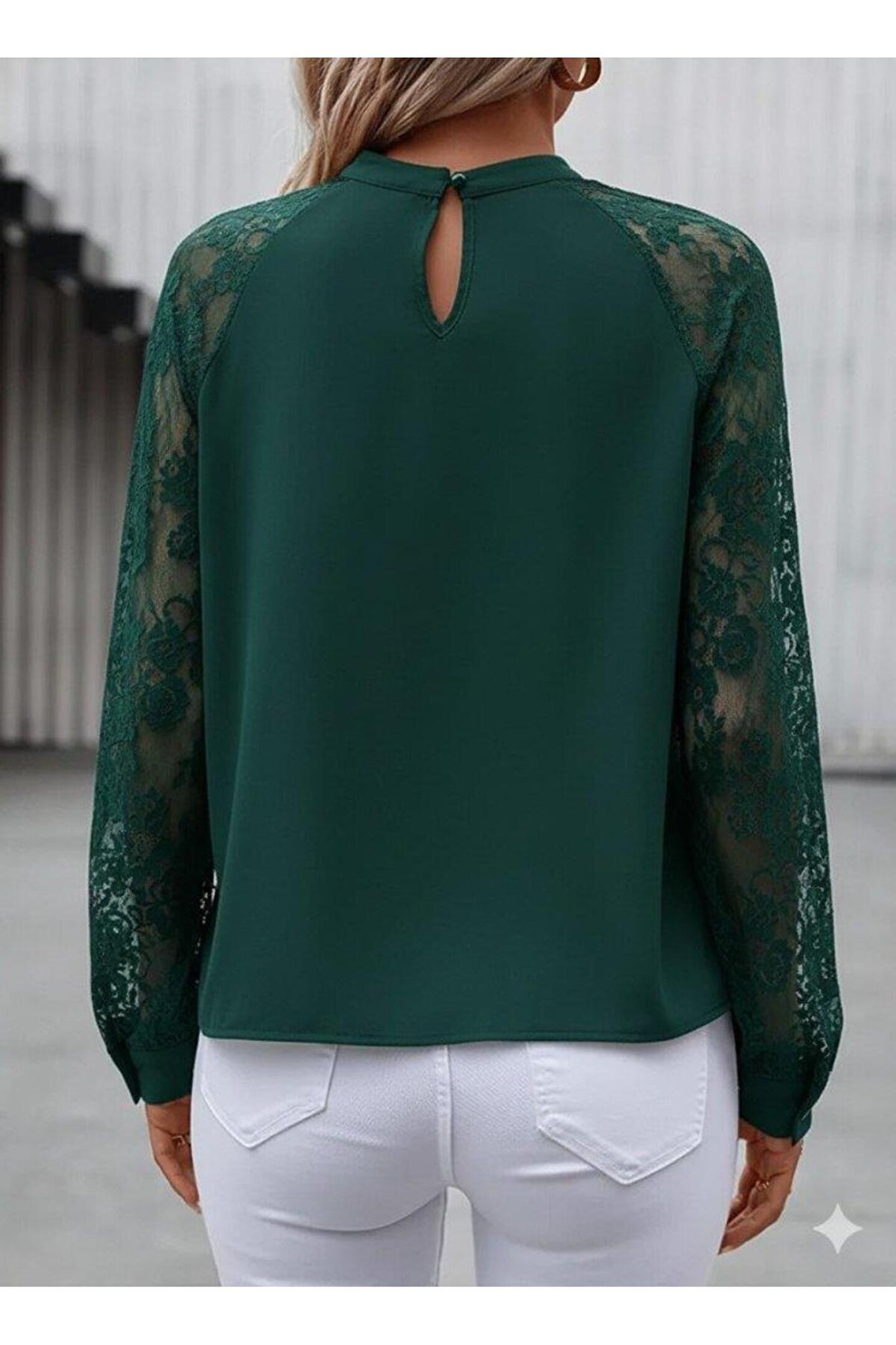 Kadın Uzun Dantel Kollu Yuvarlak Yakalı Sandy Bluz