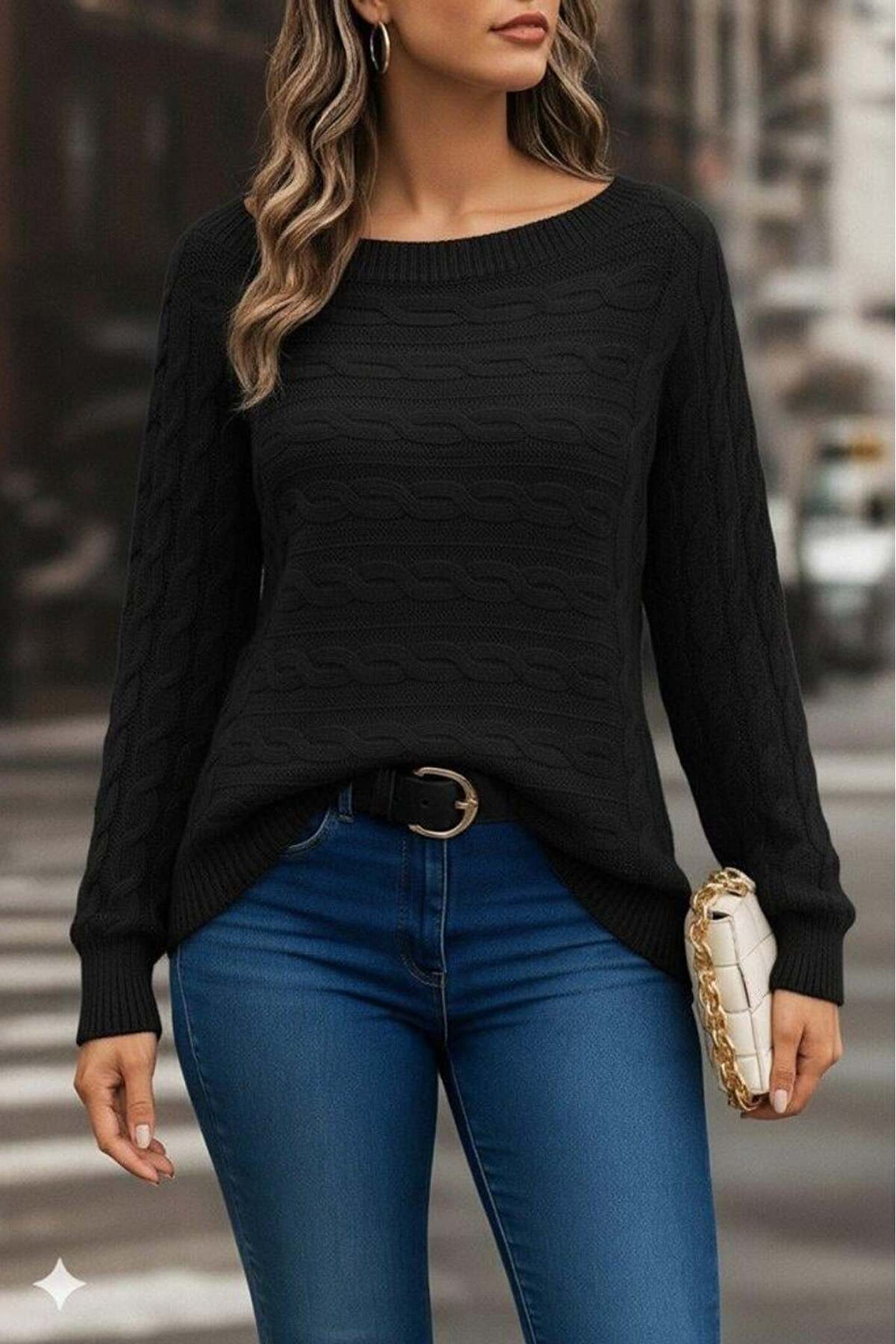Kadın Uzun Kollu Bisiklet Yaka Geometrik Desenli Triko Bluz