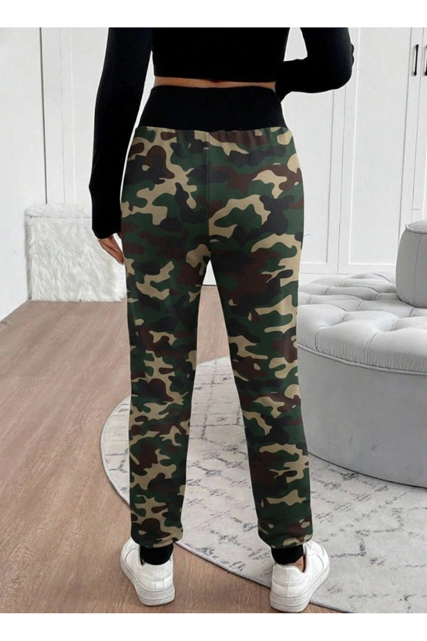 Kadın Yüksek Bel Bağcıklı Desenli Iki Iplik Pantolon