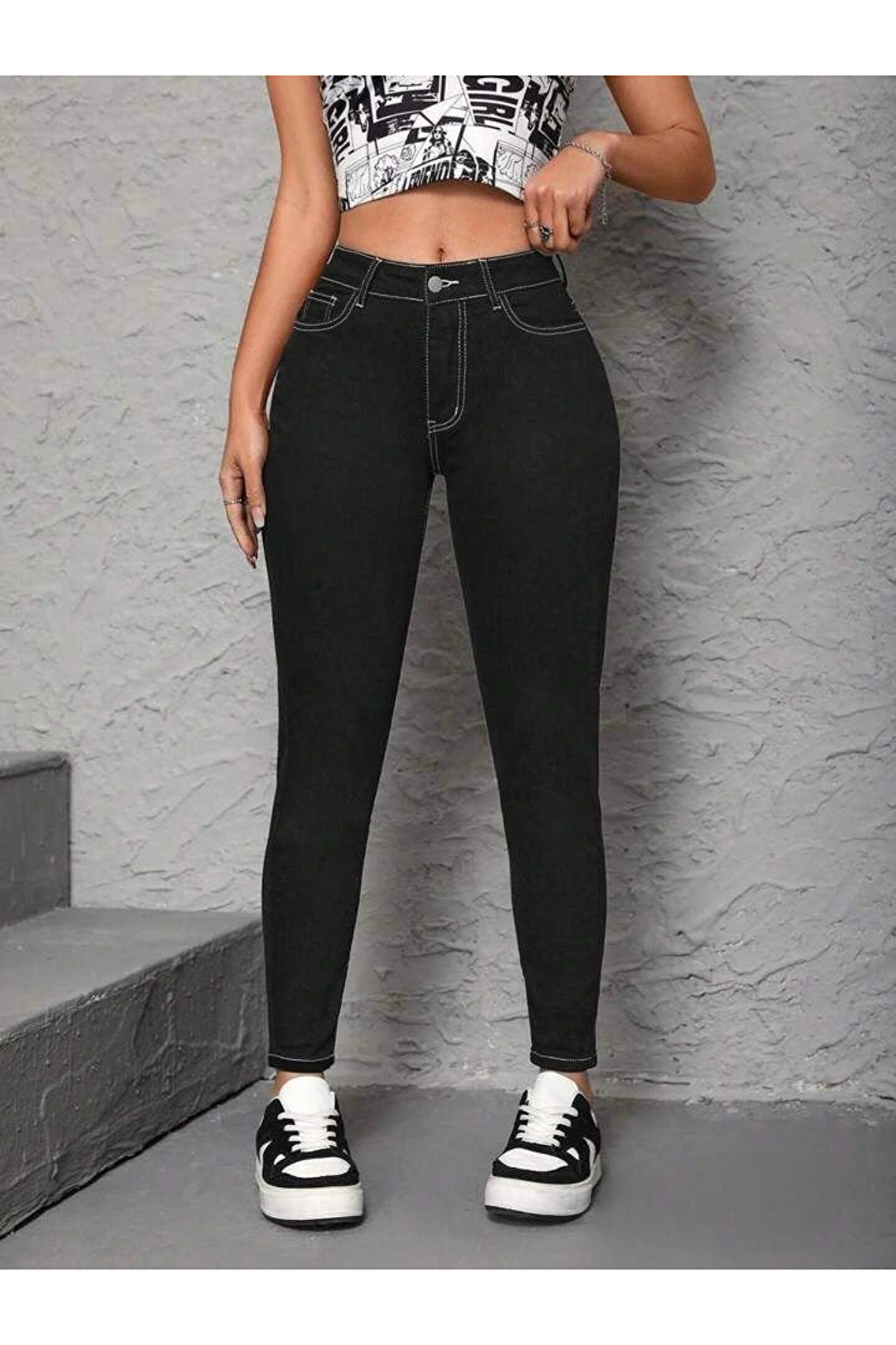 Kadın Yüksek Bel önden Düğmeli Dar Kesim Kot Pantolon