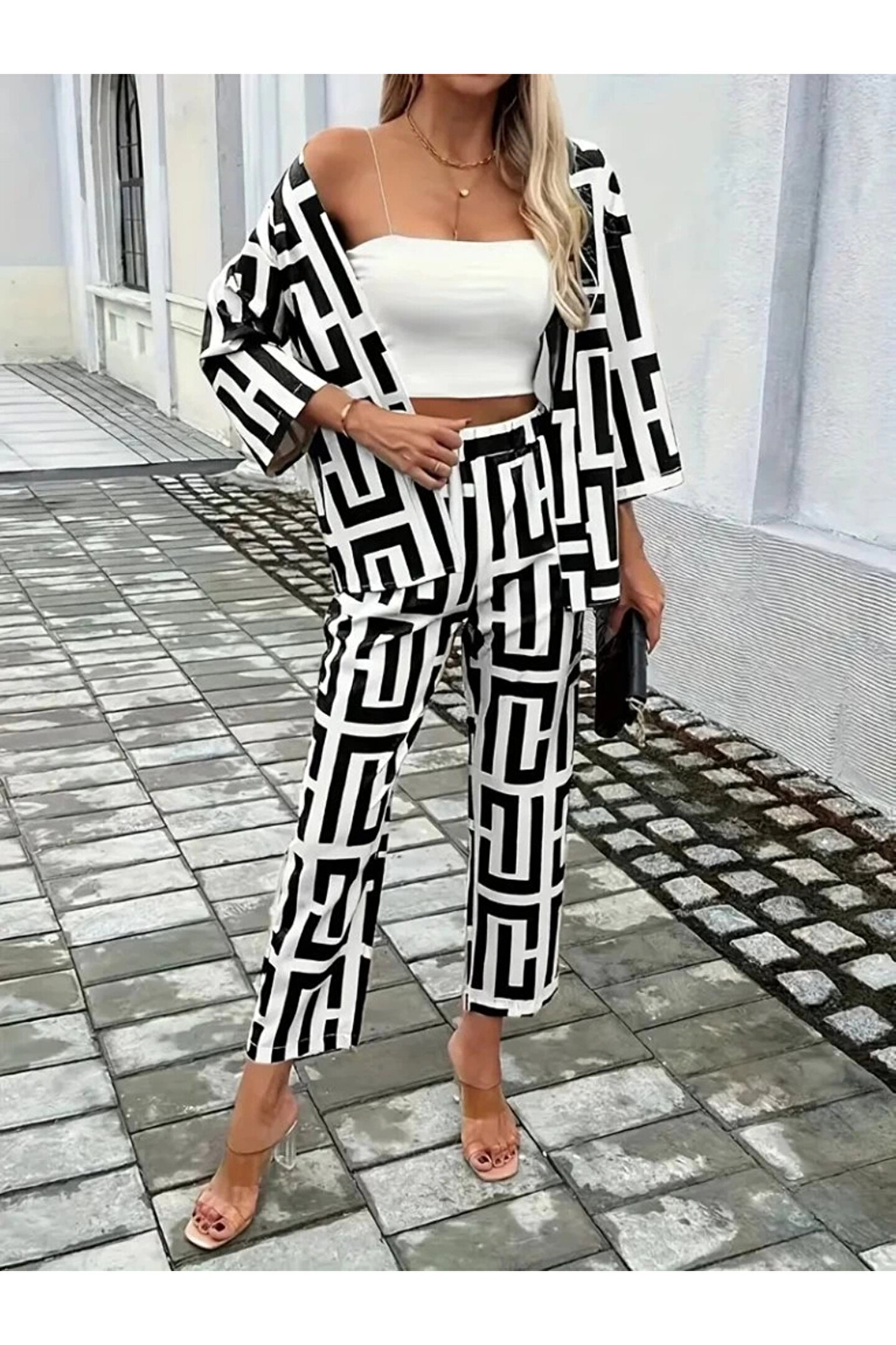 MDB Kadın Uzun Kollu önü Açık Desenli Iki Iplik Ceket Ve Pantolon Ikili Takım