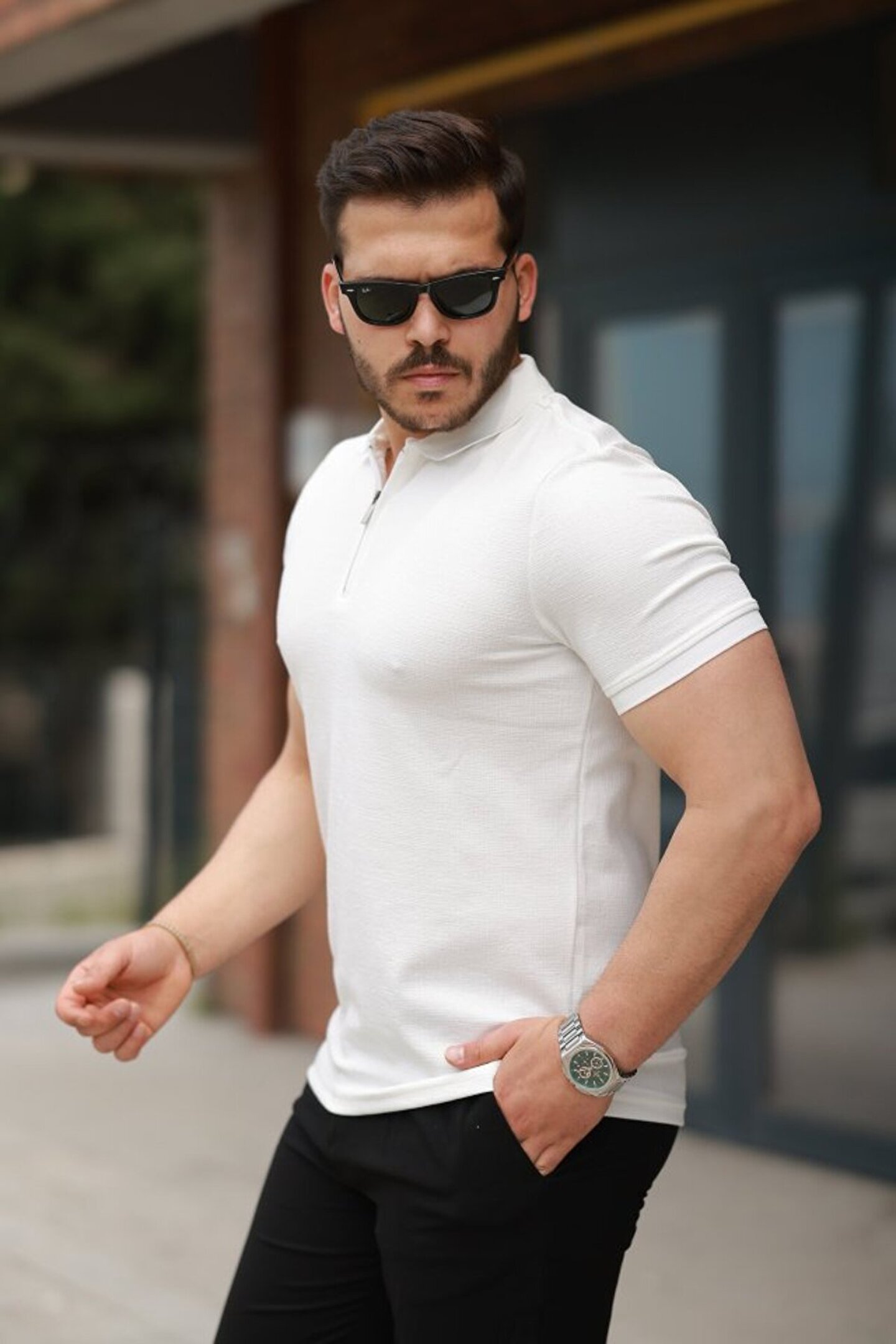 munn collection Erkek Fermuarlı Yaka Kısa Kollu Tişört