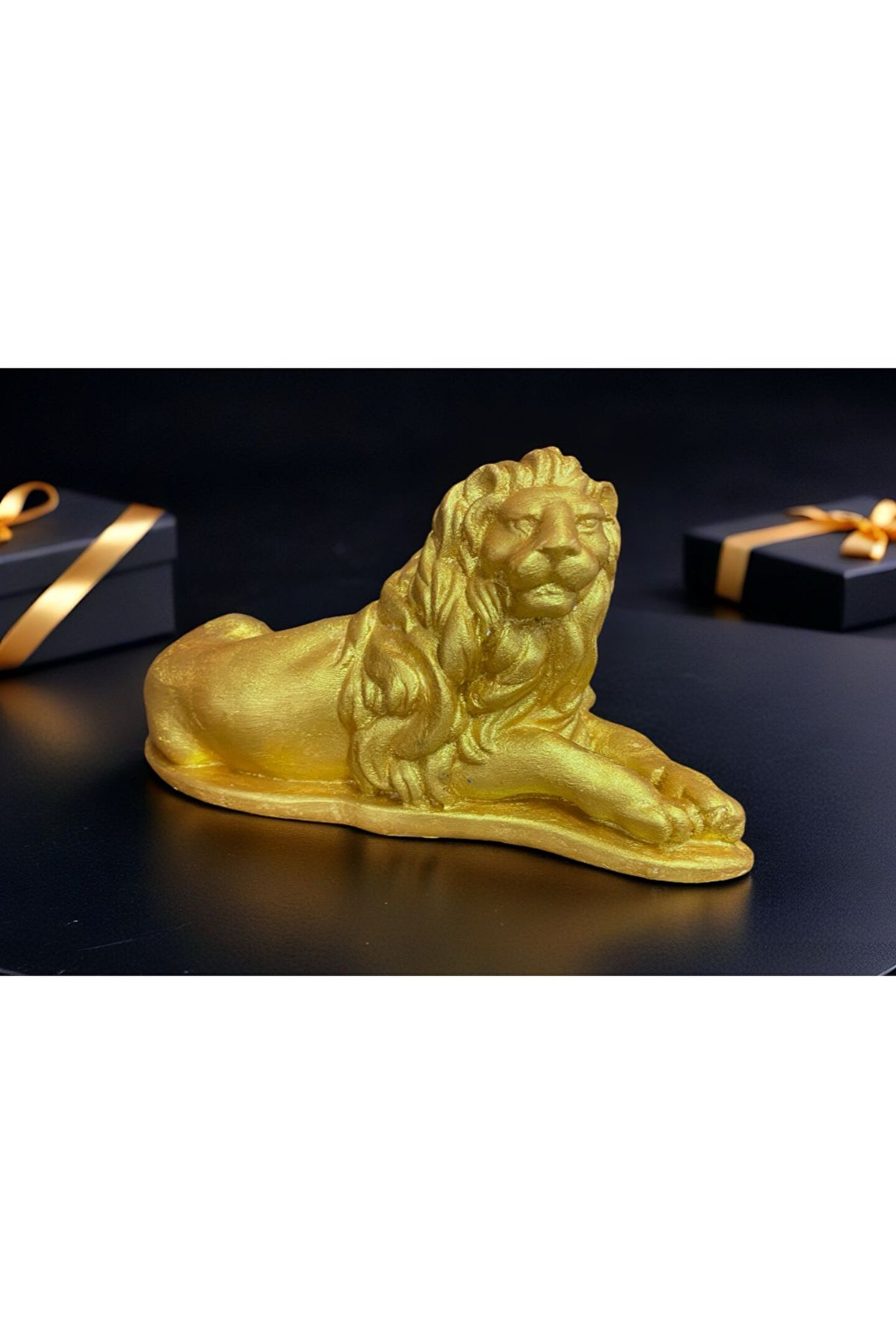 21 Cm Gold Altın Varak Dekoratif Aslan Obje Heykel Büst Hediyelik